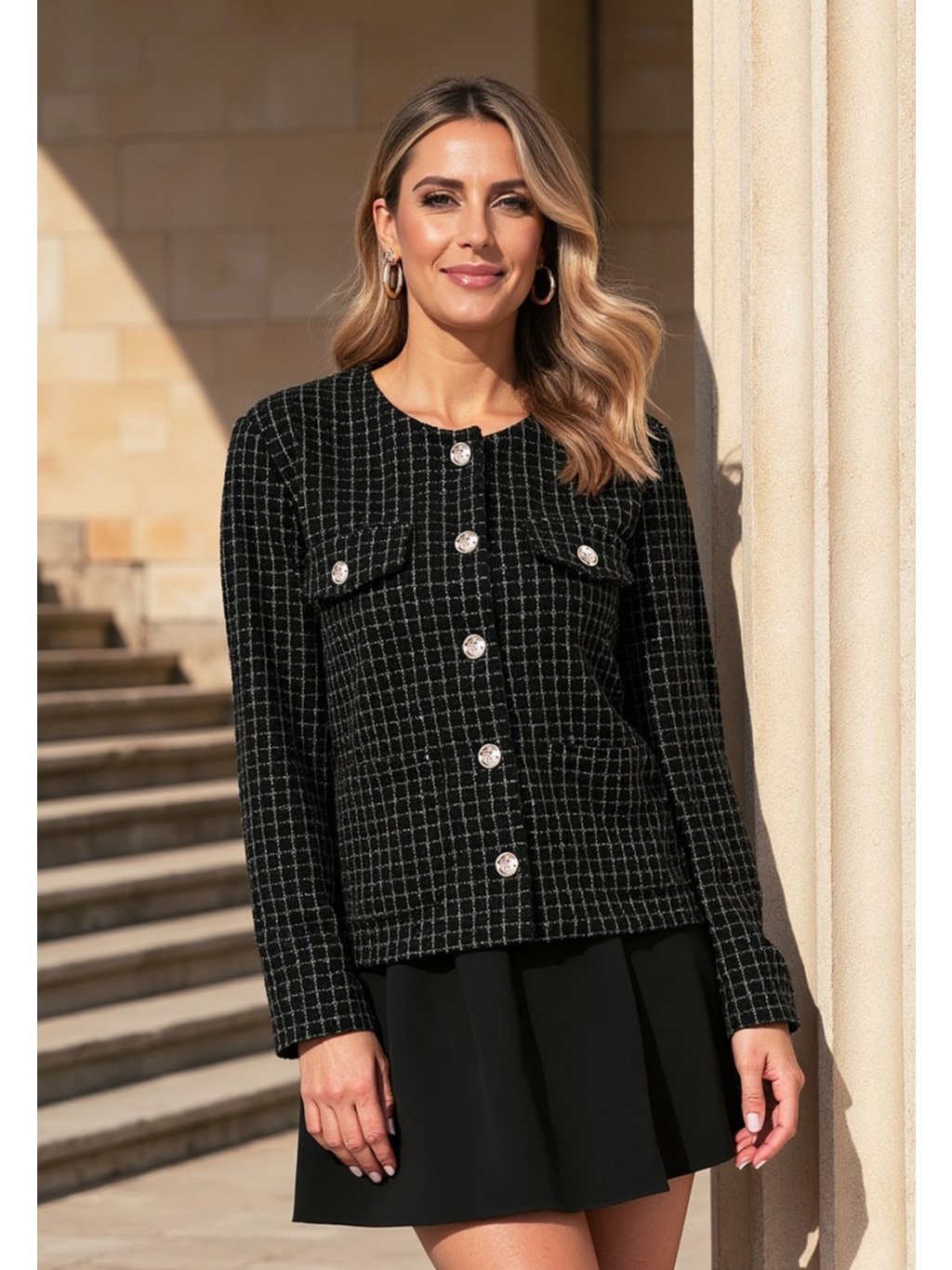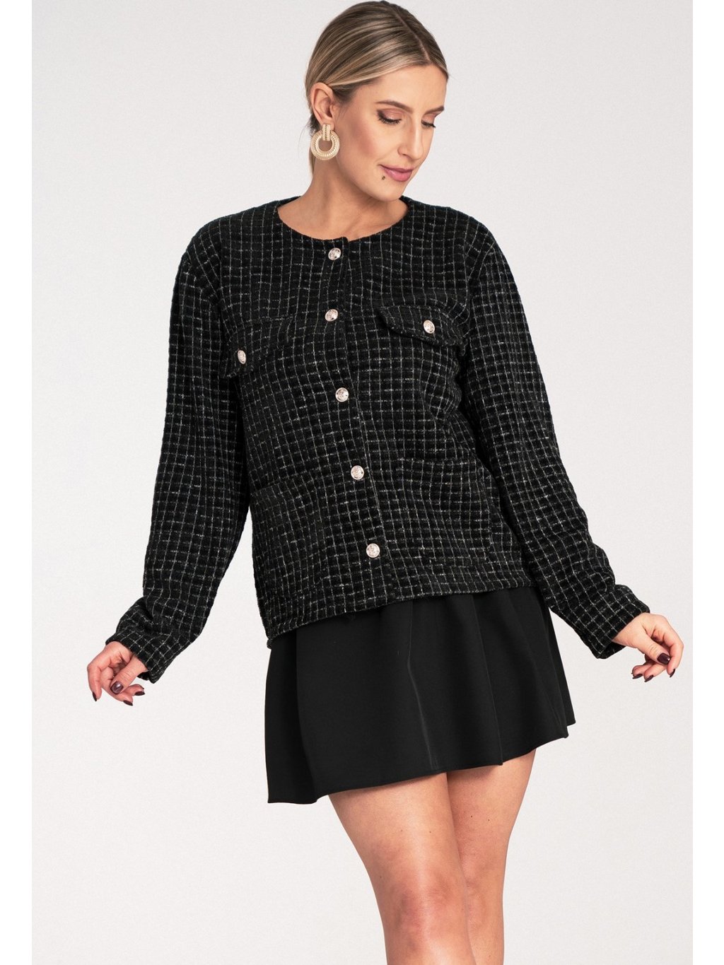 Fekete női kockás blézer