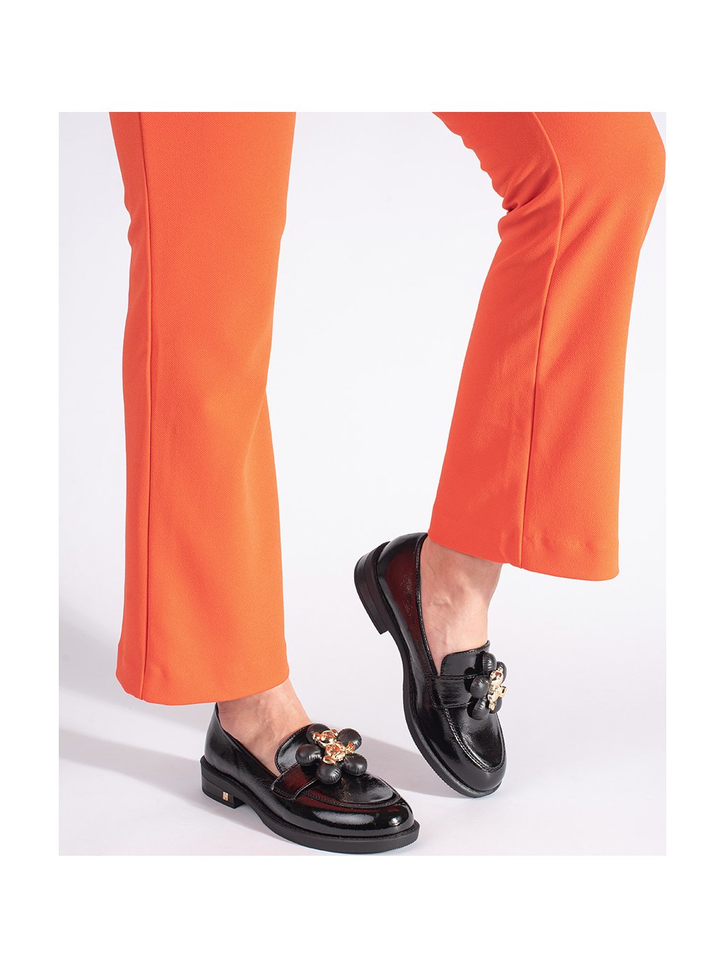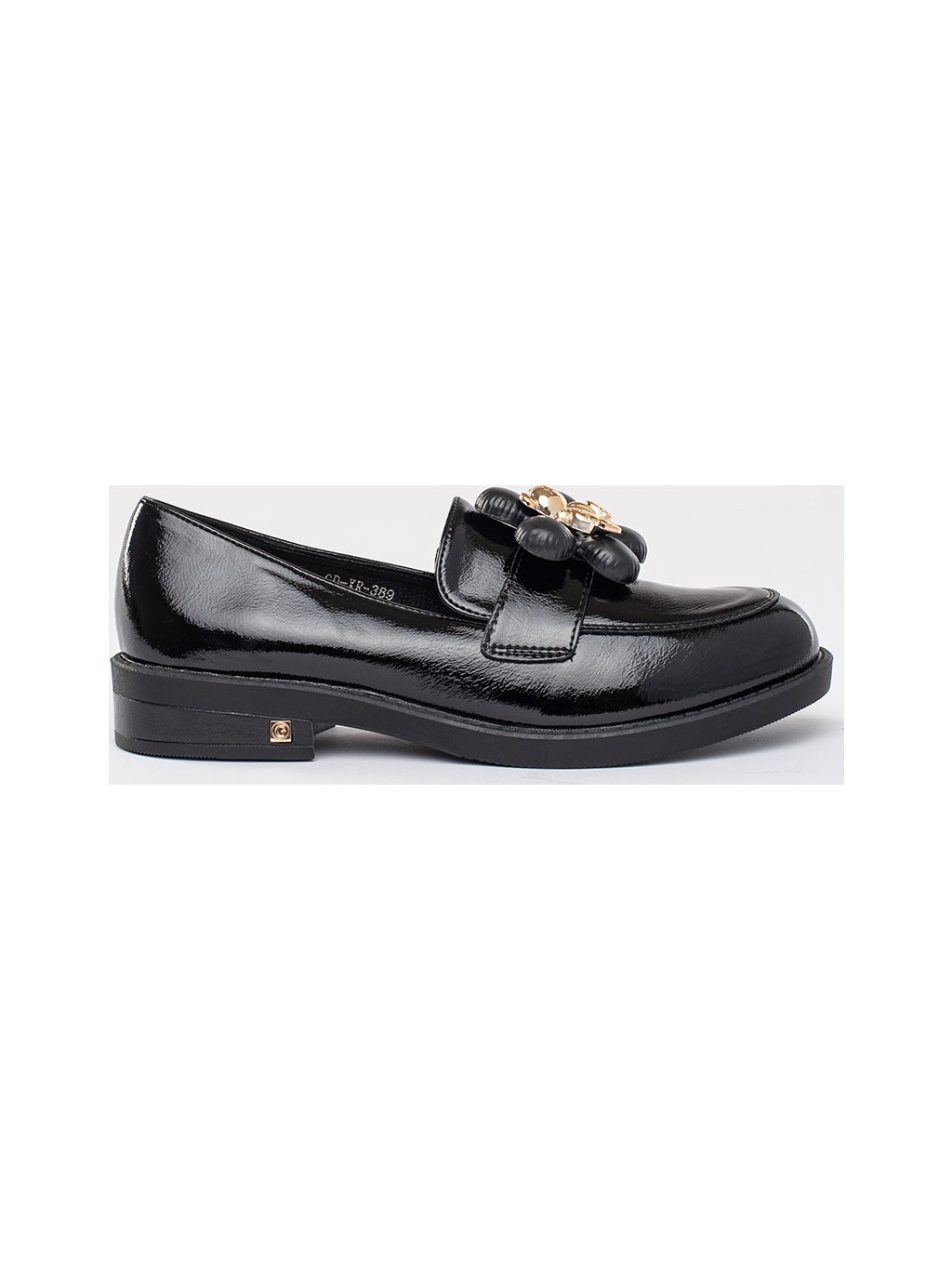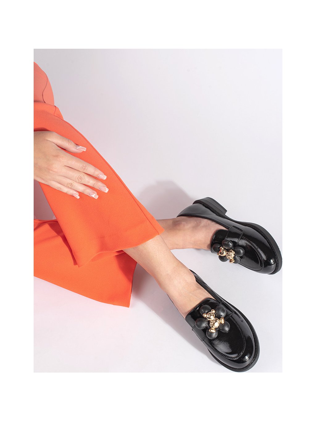 Fekete női lakkozott mokaszin macival