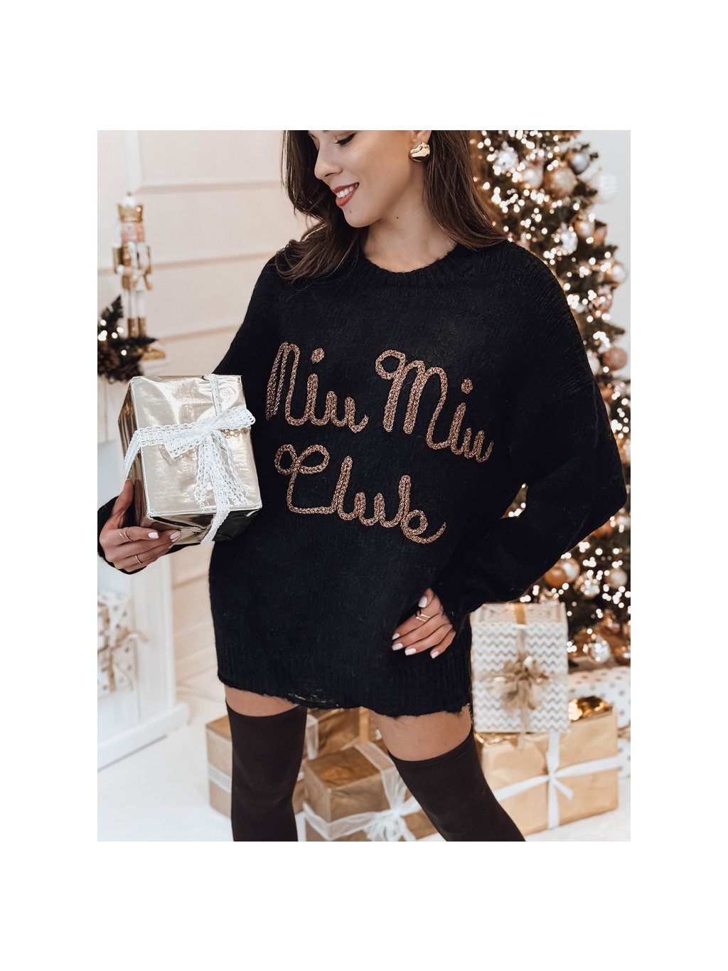 Fekete női meleg pulóver hímzéssel MIU MIU