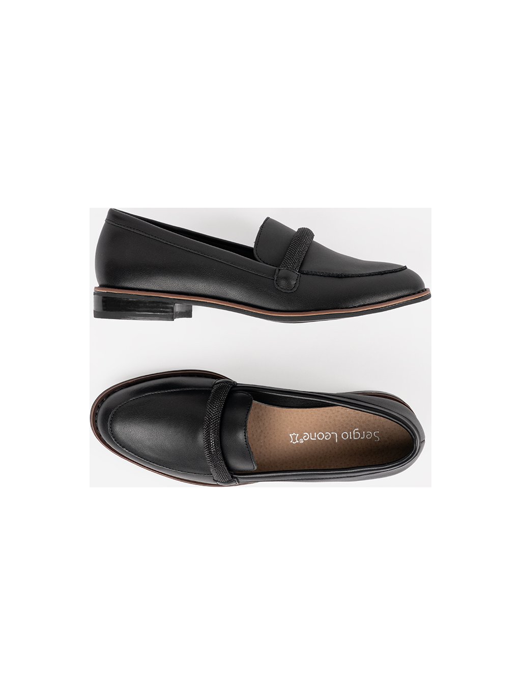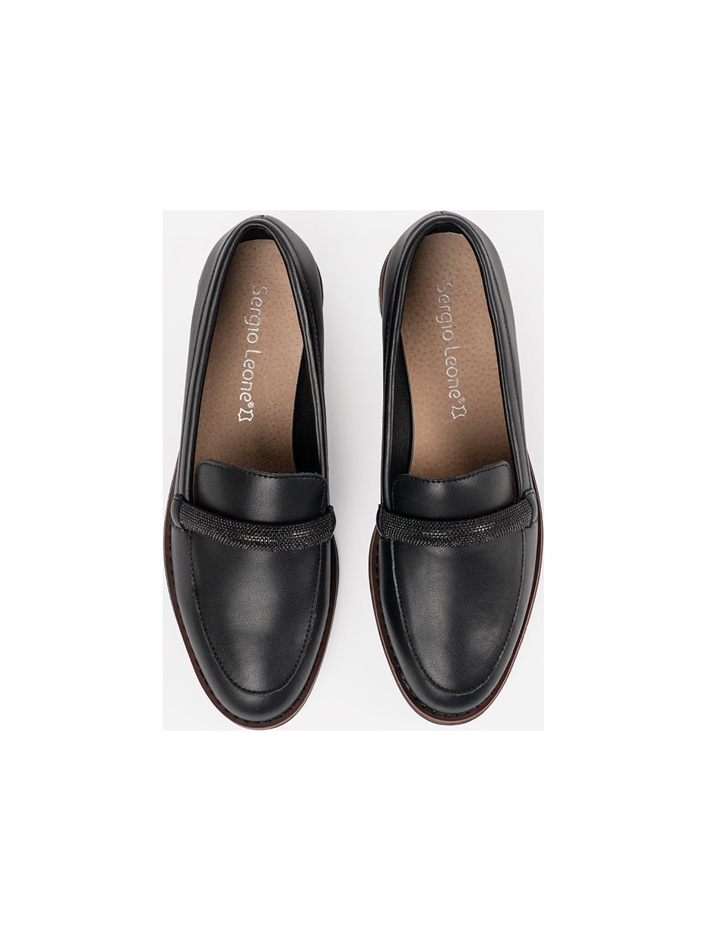 Fekete női mokaszin bőr talpbetéttel Sergio Leone