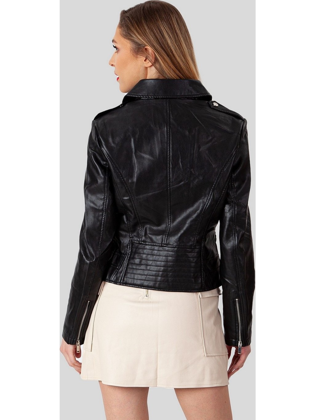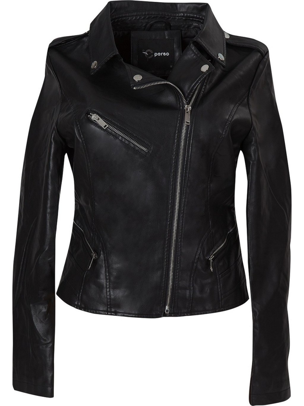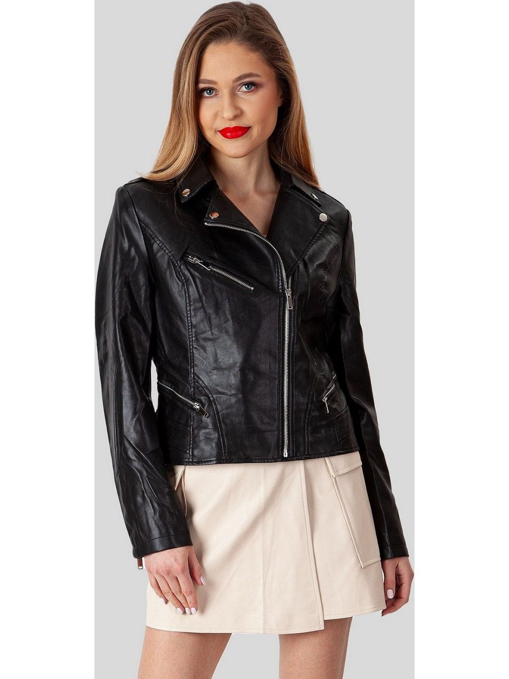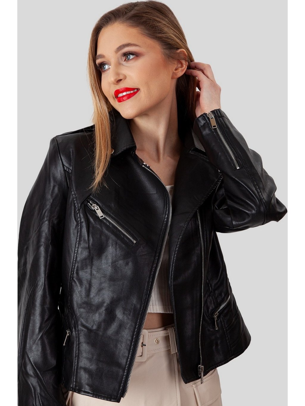 Fekete női műbőr kabát cipzárral *