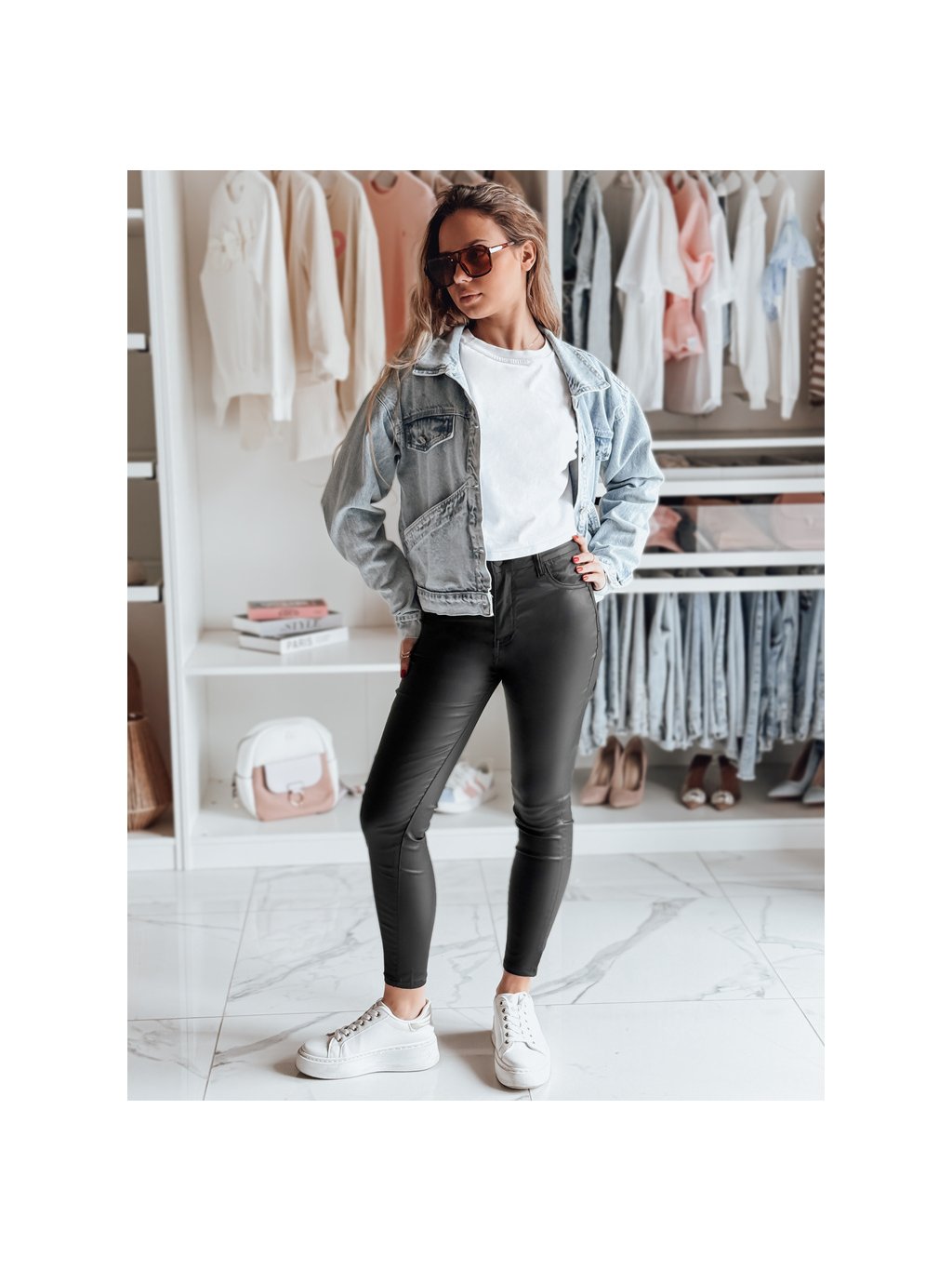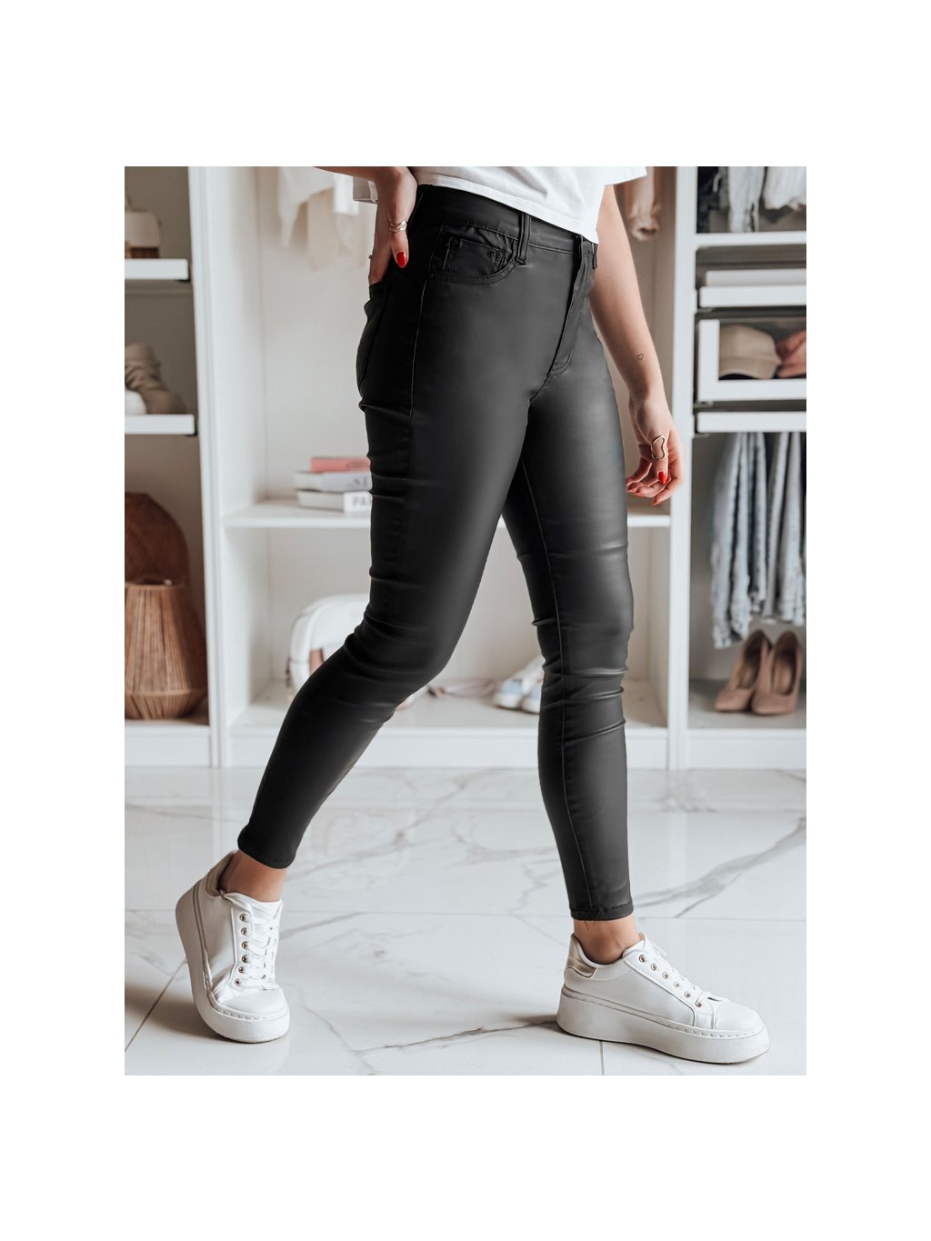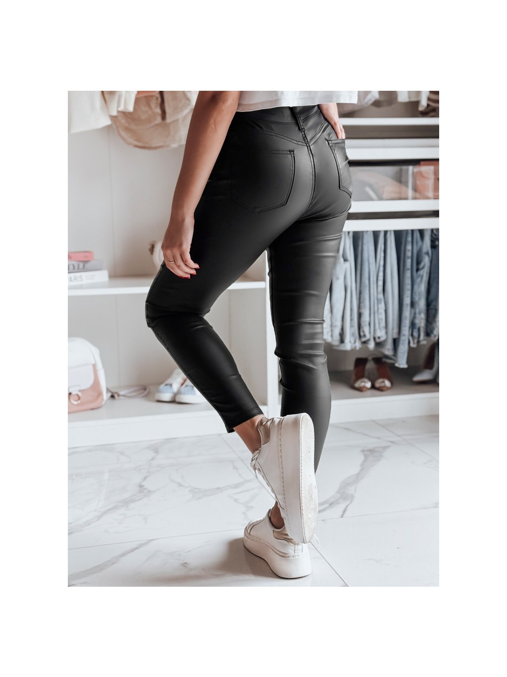Fekete női műbőr nadrág BLACKVIBE