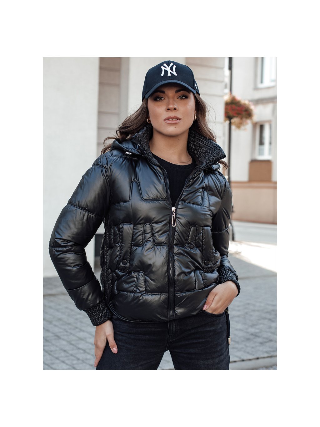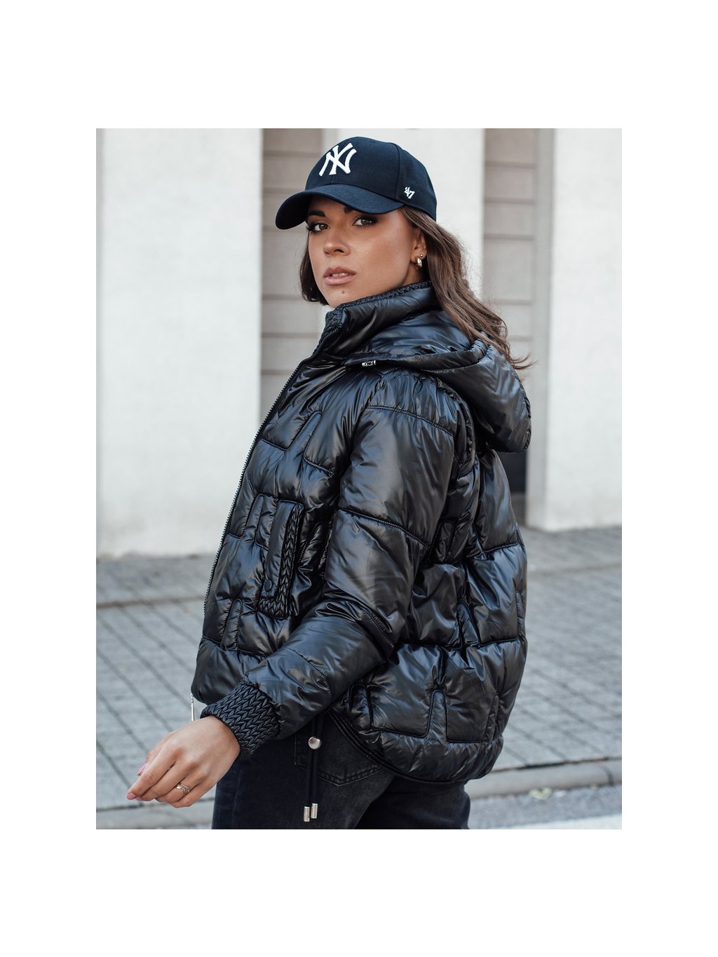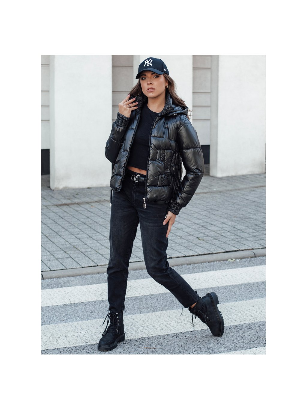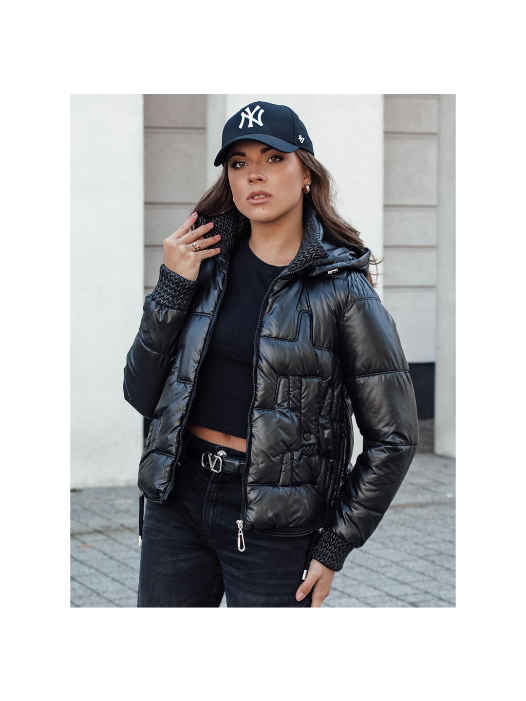 Fekete női rövid téli steppelt dzseki kapucnival FASHWARM