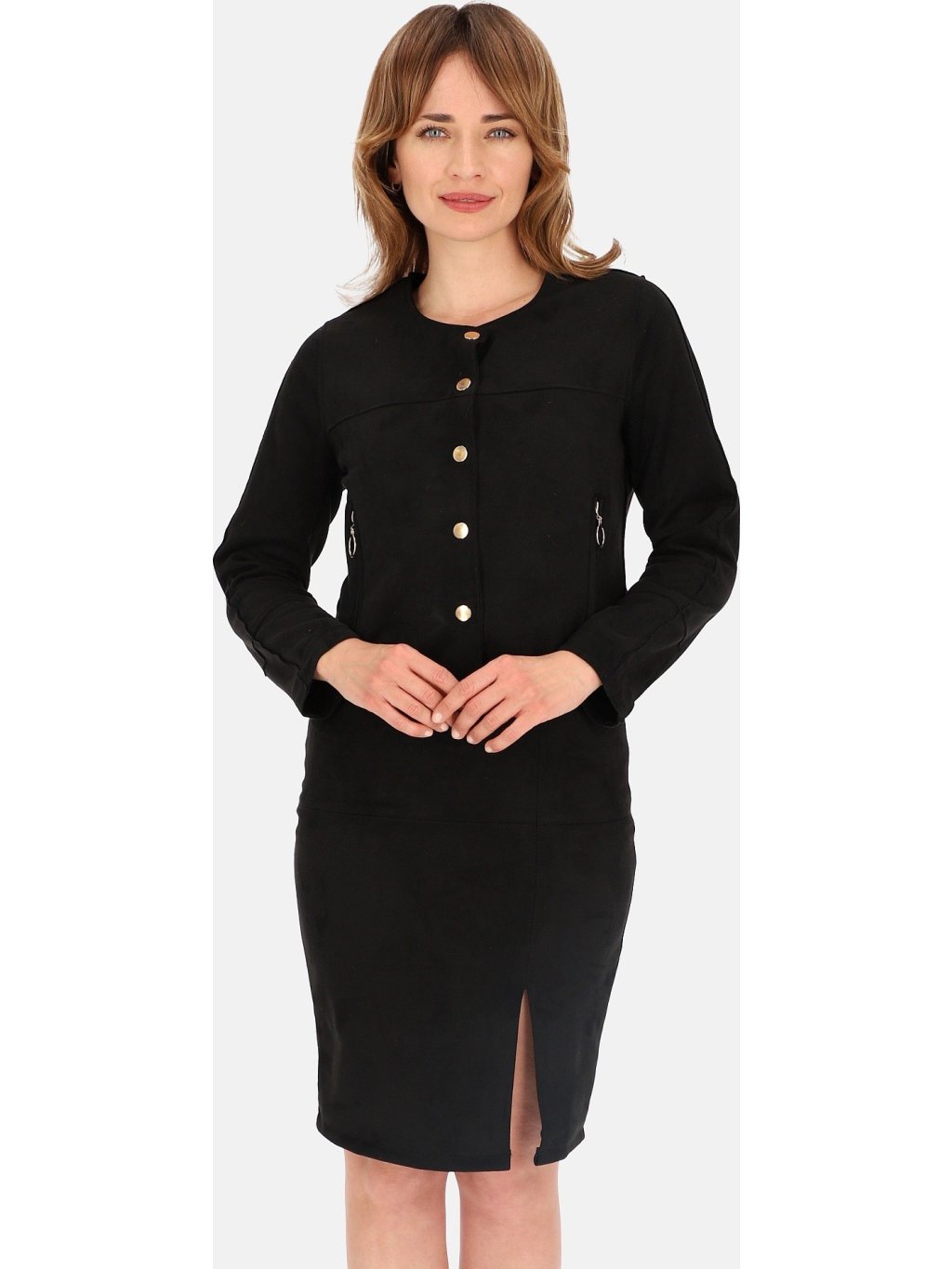 Fekete női rövid velúr kabát arany szegecsekkel