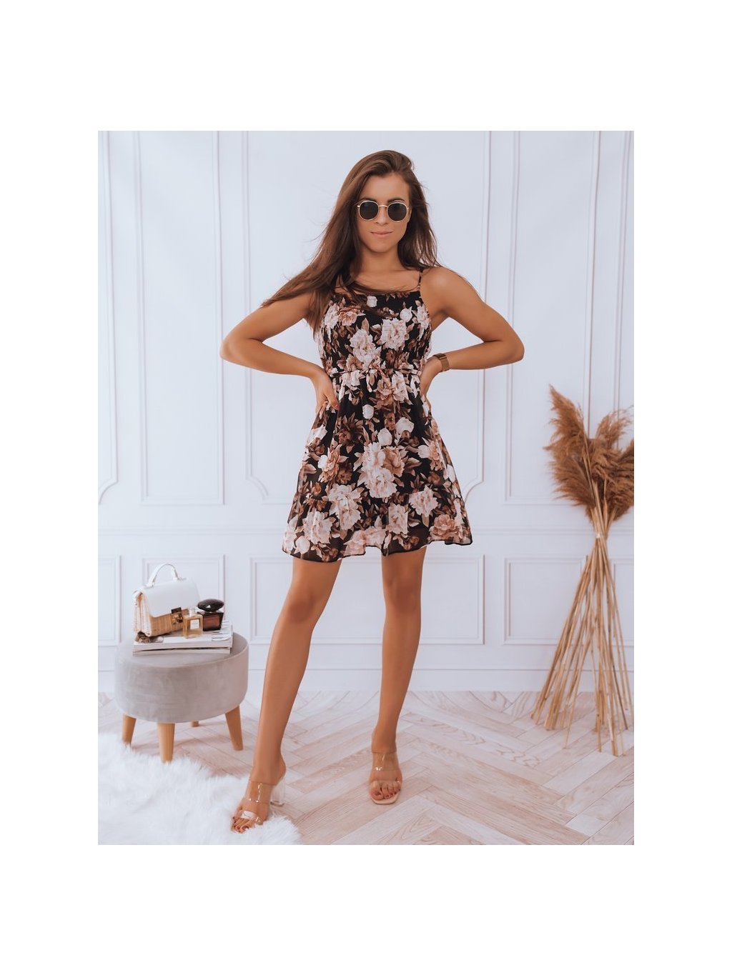 Fekete nyári ruha bazsarózsa mintával HESSA