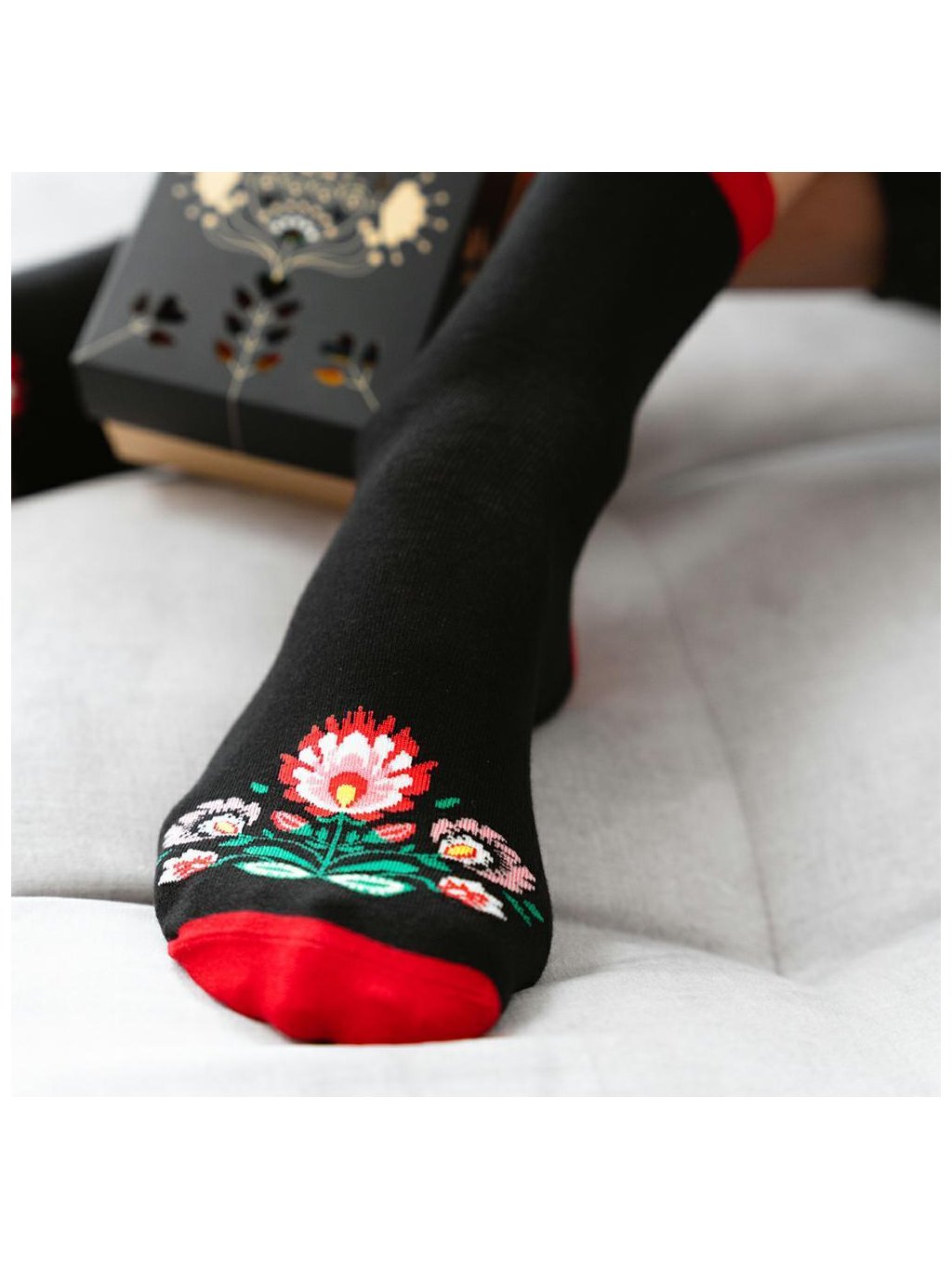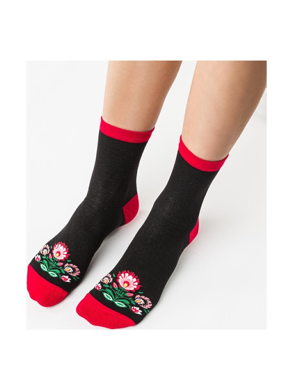 Fekete-piros női zokni folklór motívummal Art.118