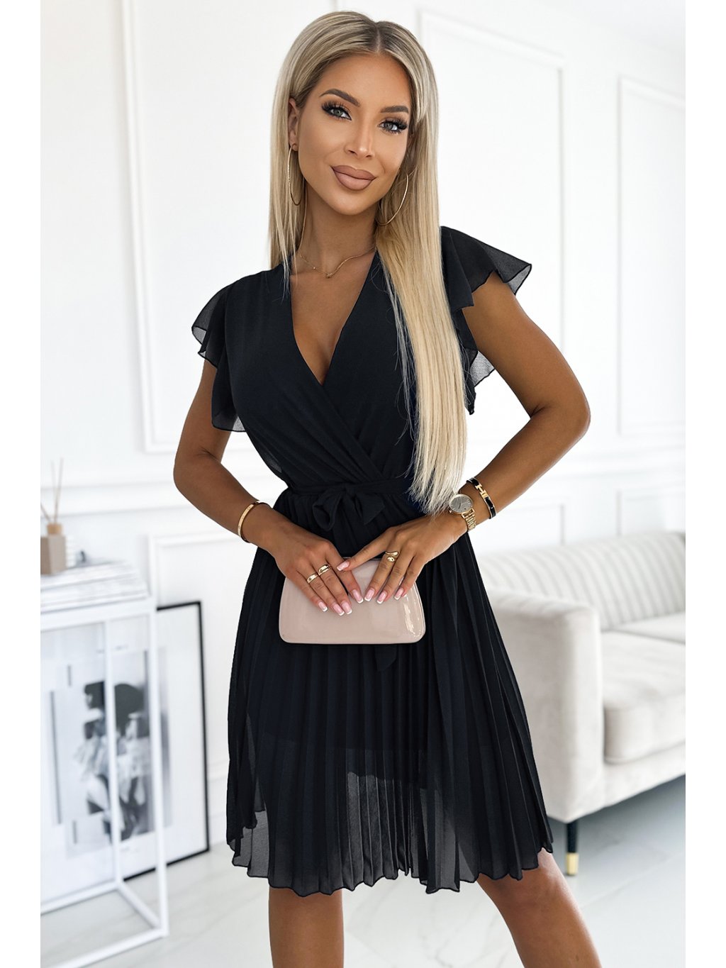 Sifon fekete redős ruha S nyakkivágásszabásem és fodrok CLARISA