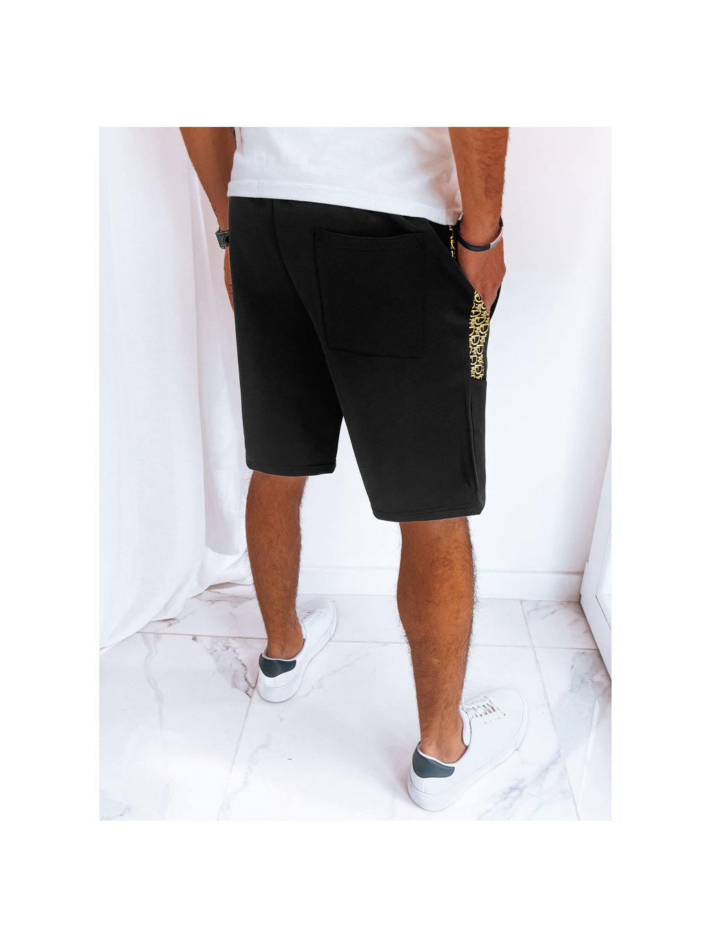 Férfi rövid melegítőnadrág nyomtatással.