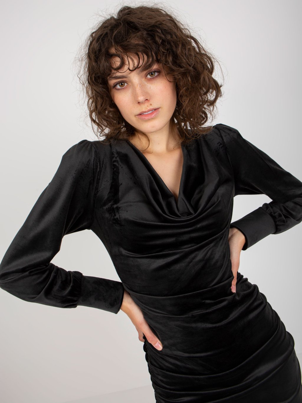 Fekete ruha fodorral az oldalán