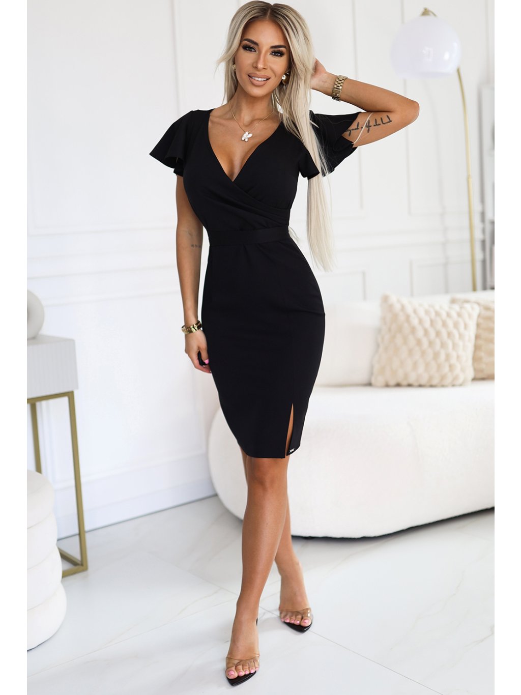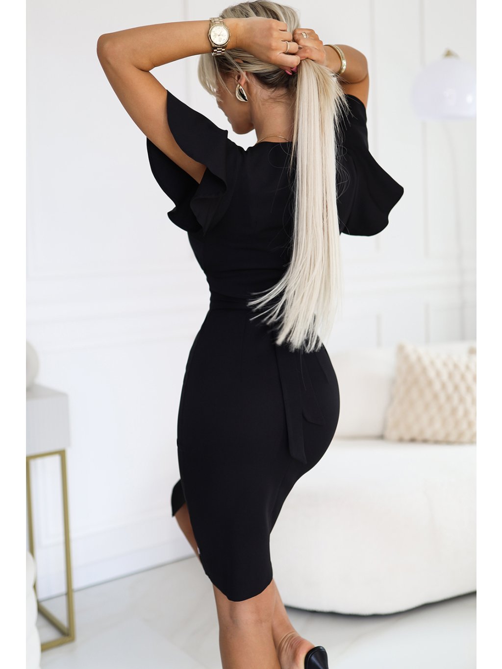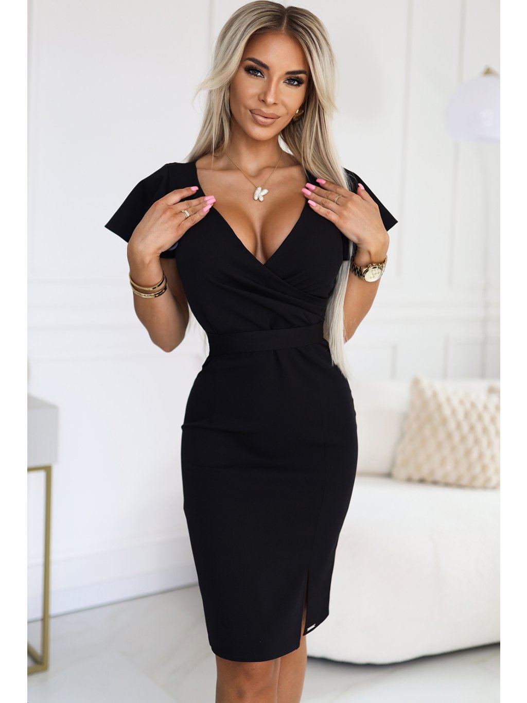 Fekete ruha nyakkivágással és övvel STEPHANIE