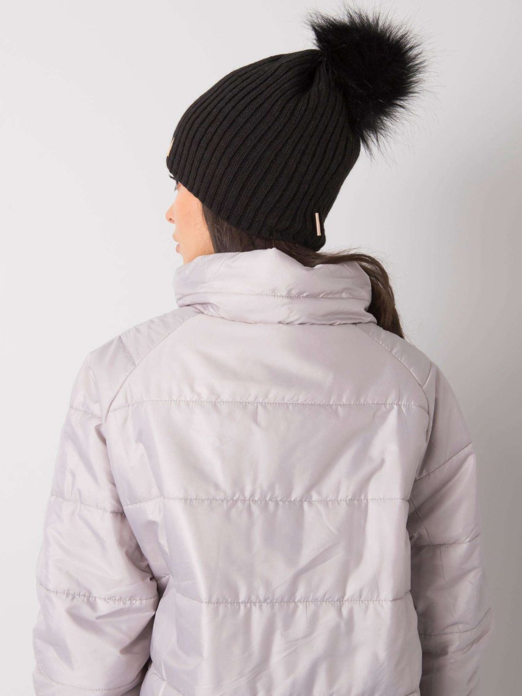 Fekete sapka szőrme pompommal