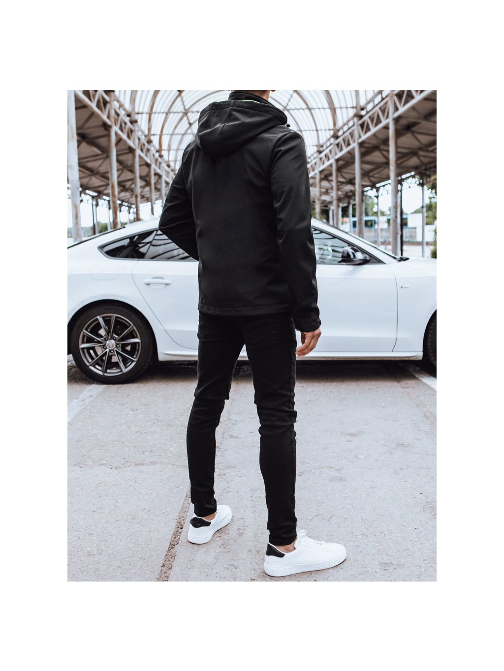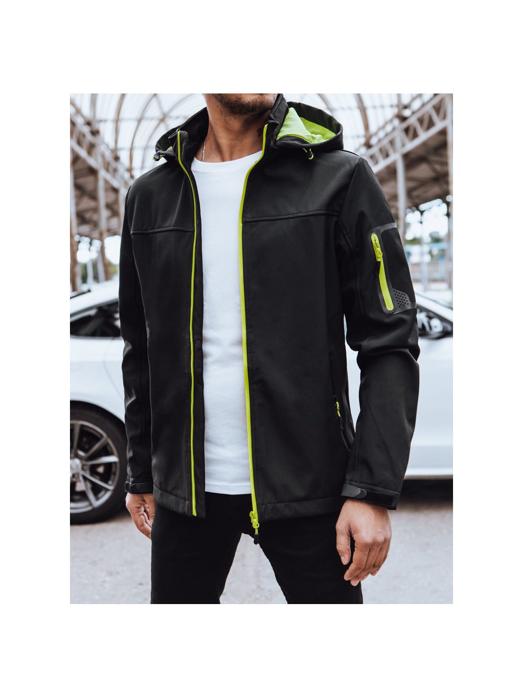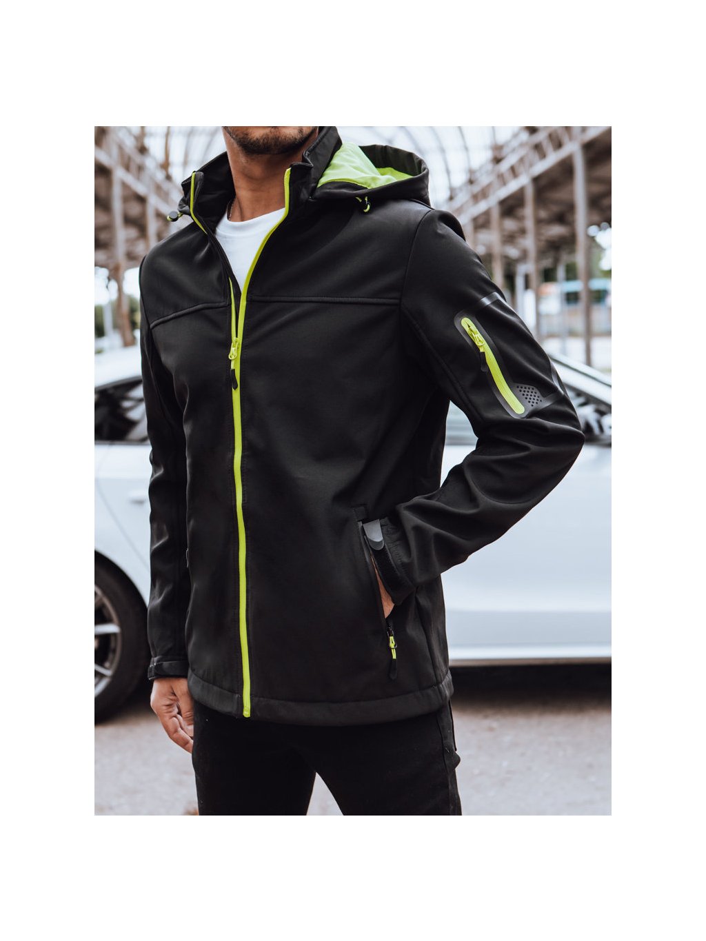 Férfi softshell kabát kapucnival.