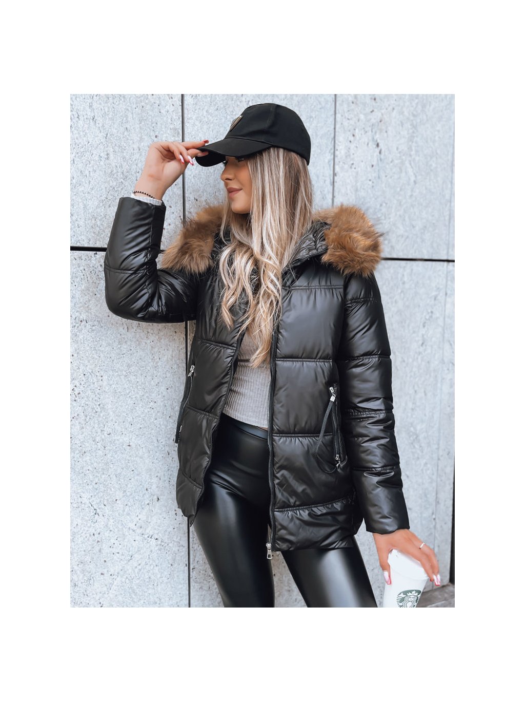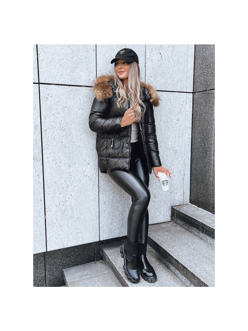 Fekete steppelt kabát AMBER DAWN