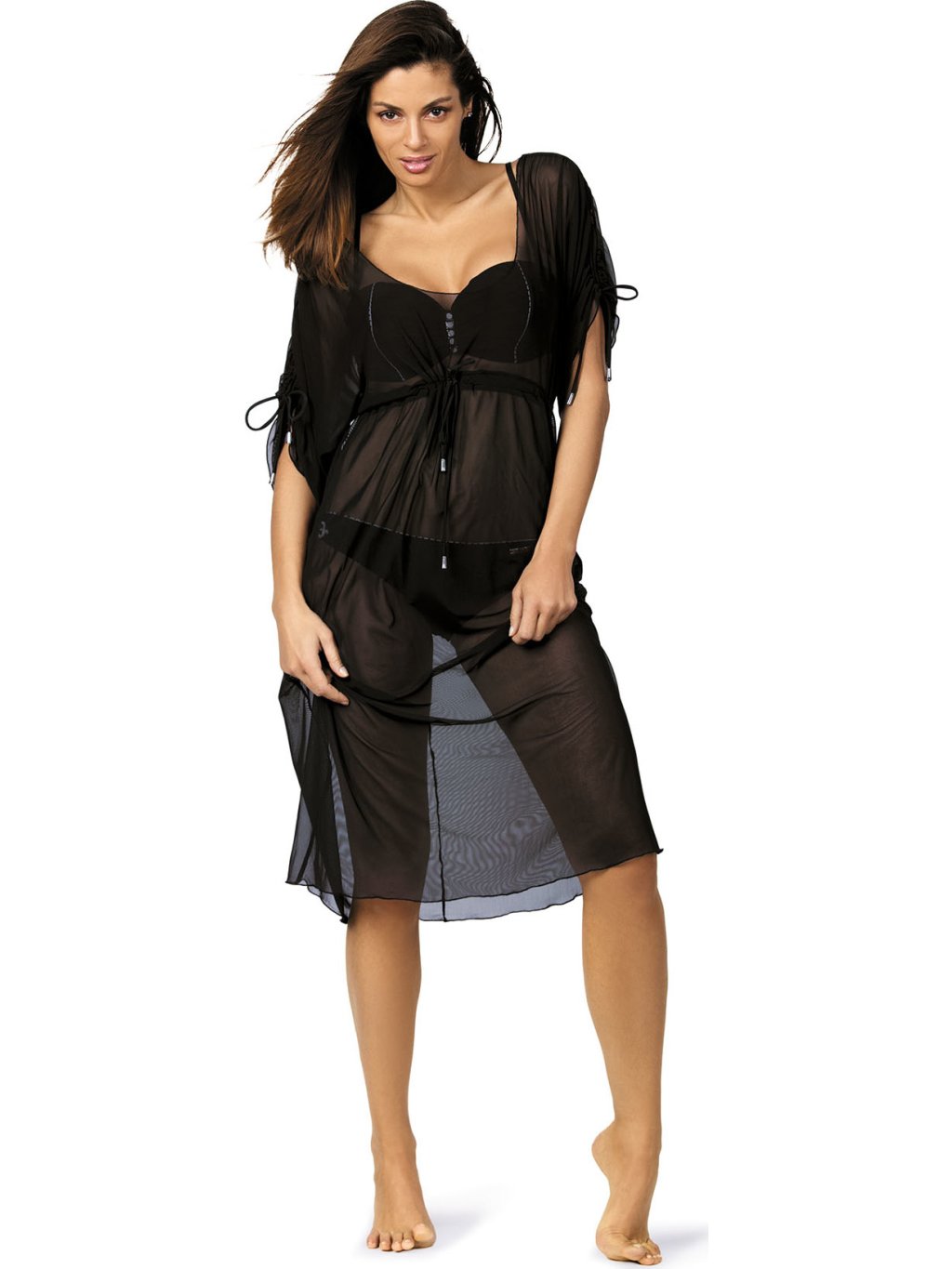 Fekete strandtunika fürdőruhához húzózsinórral Dora Nero