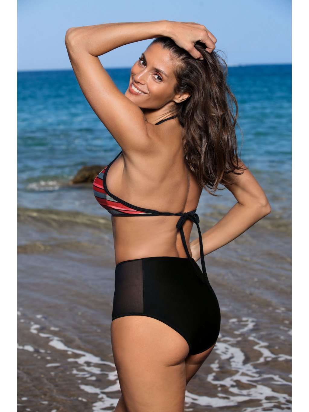 Fekete-színes csíkos bikini Syndy Nero-Red