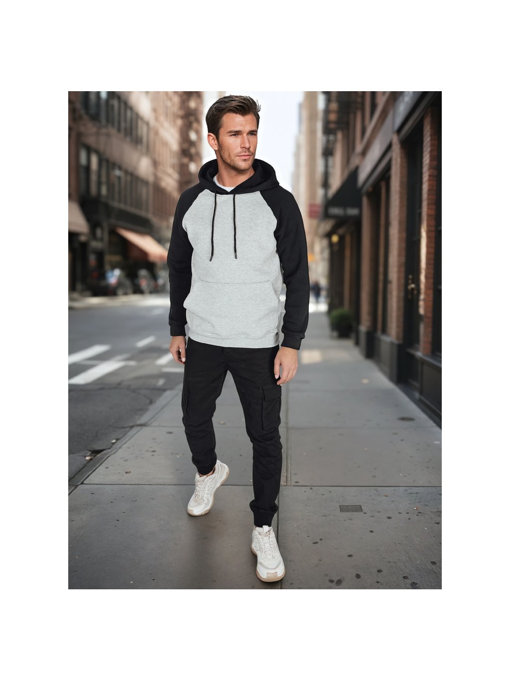 Fekete-szürke kényelmes férfi pulóver kenguru zsebbel