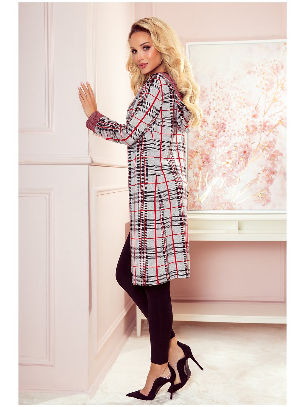 Fekete-szürke-piros kabát kapucnival COLETTE