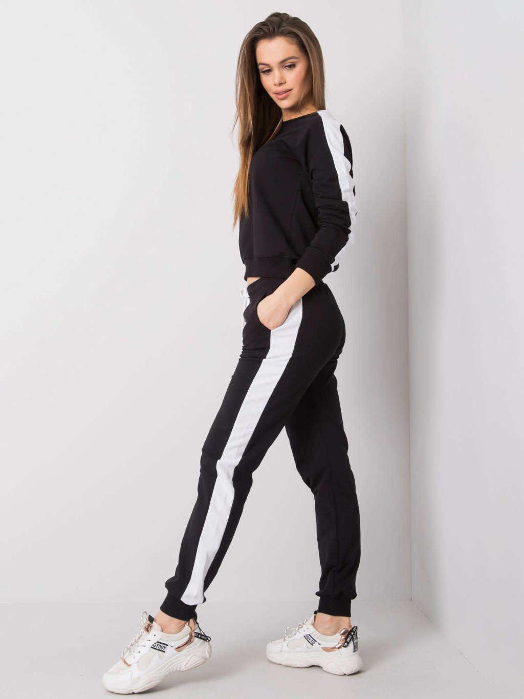 Fekete tréningruha szett fehér csíkkal