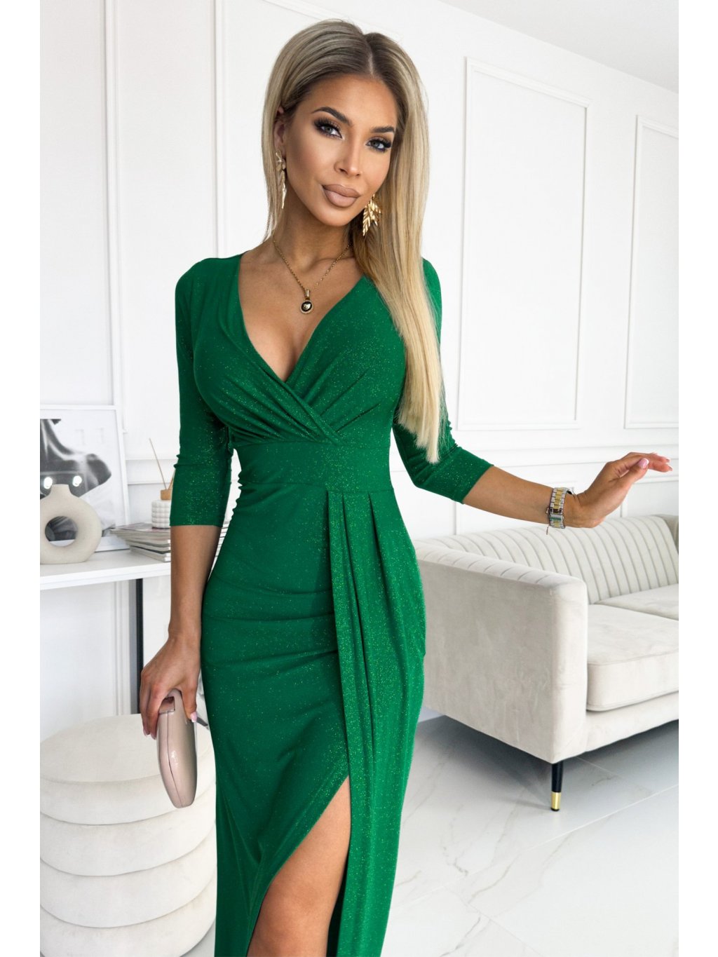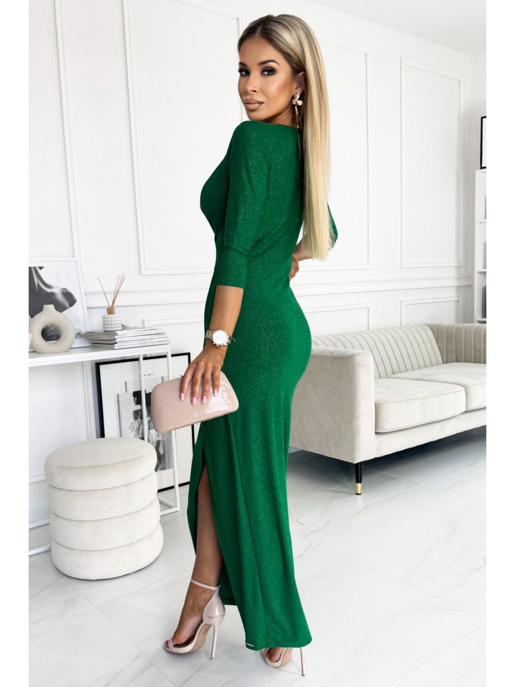 Fényes zöld ruha csillámmal MILENA