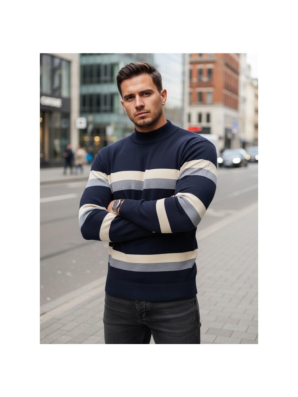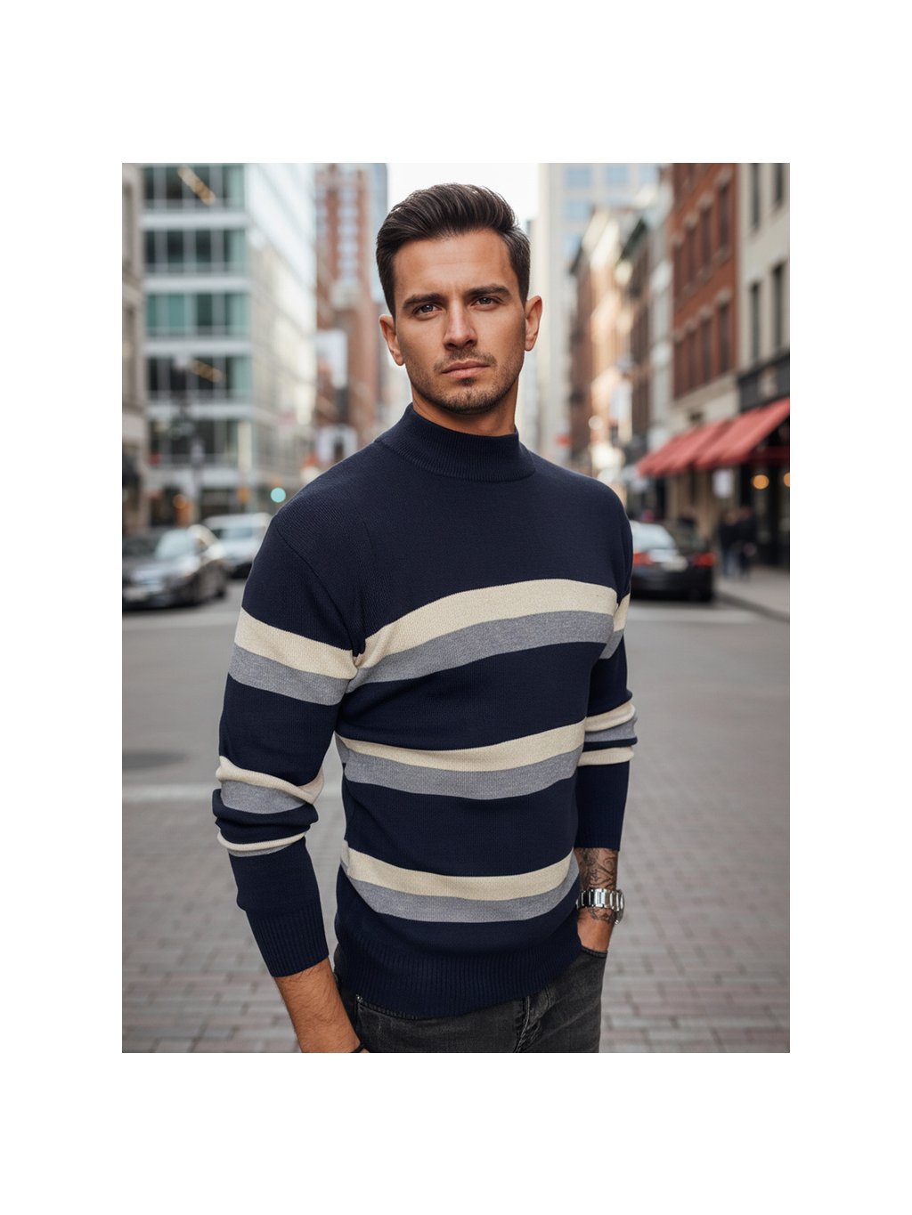 Férfi garbó- sötétkék/szürke/fehér