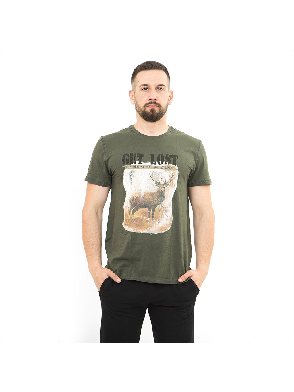Férfi khaki póló rövid ujjal és "Get lost" nyomattal