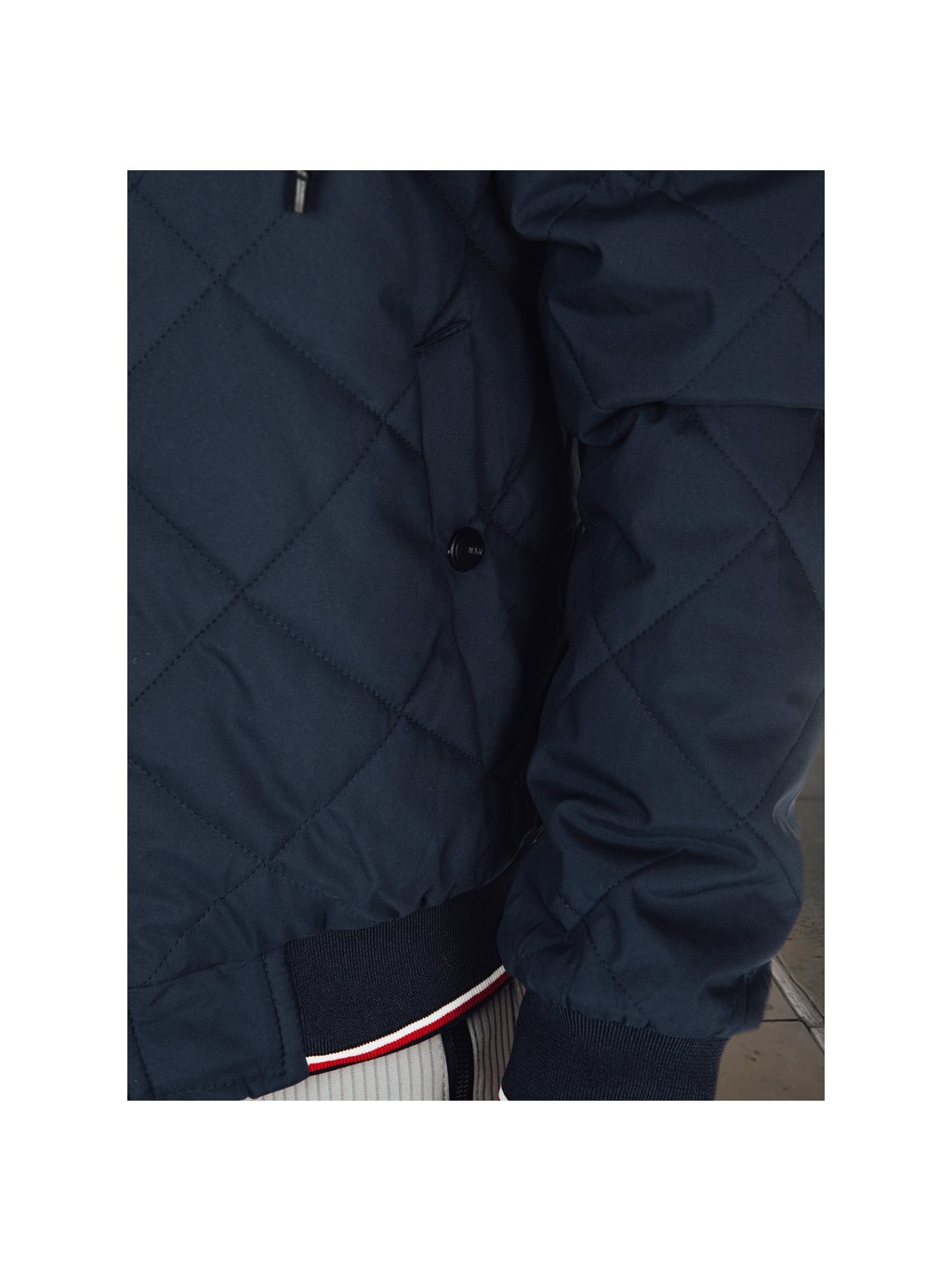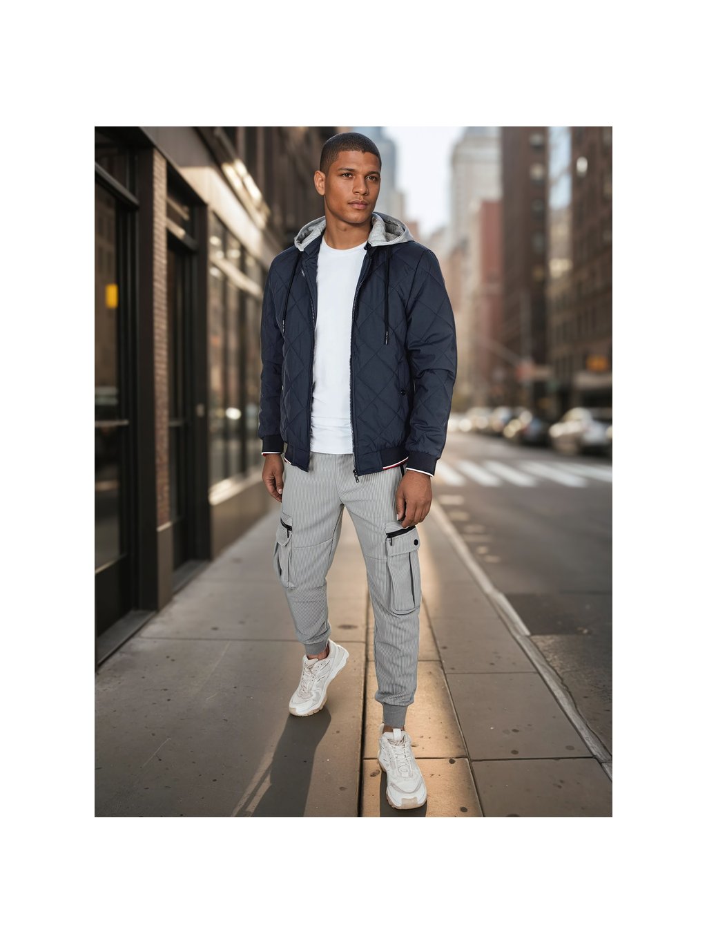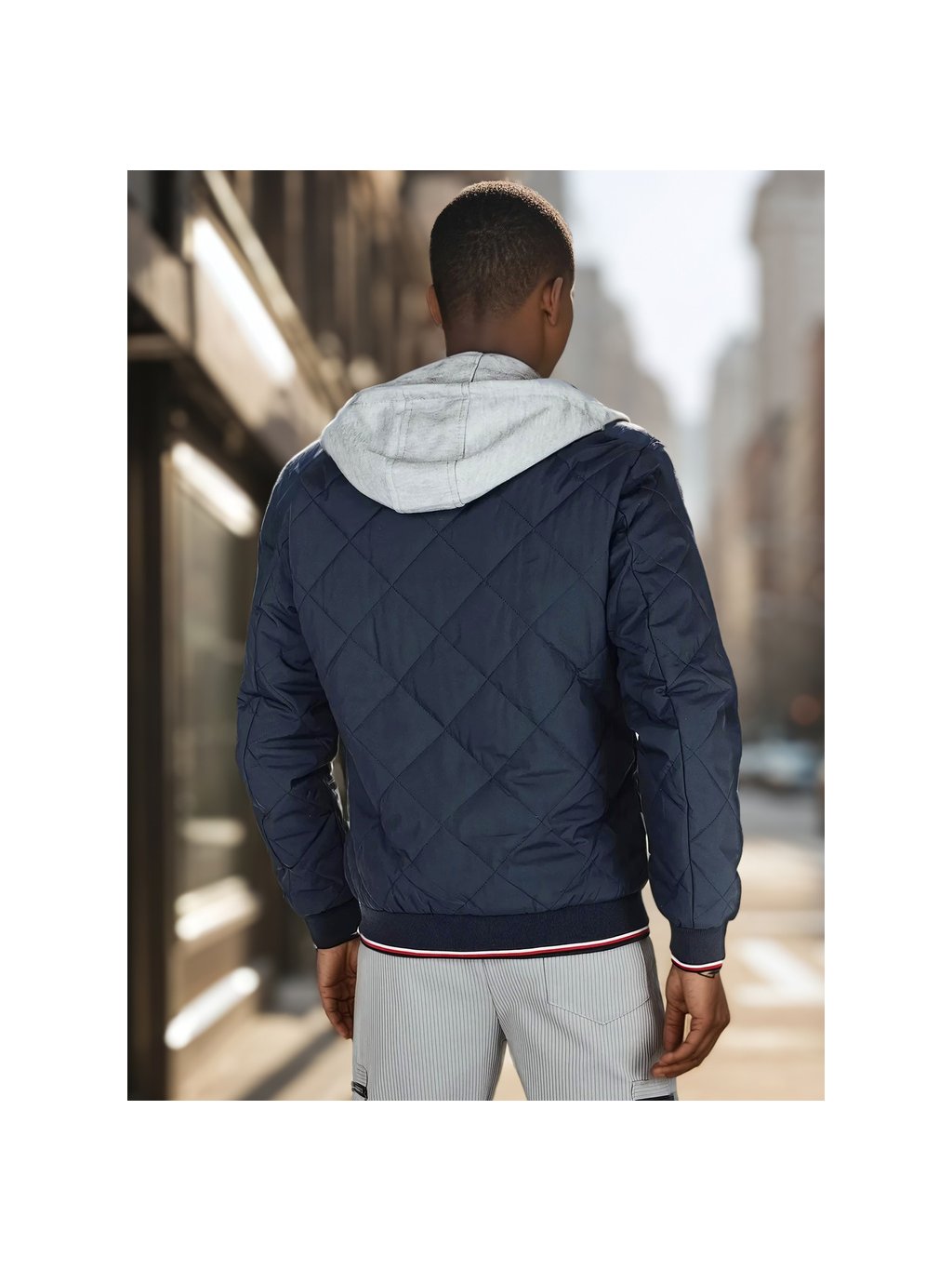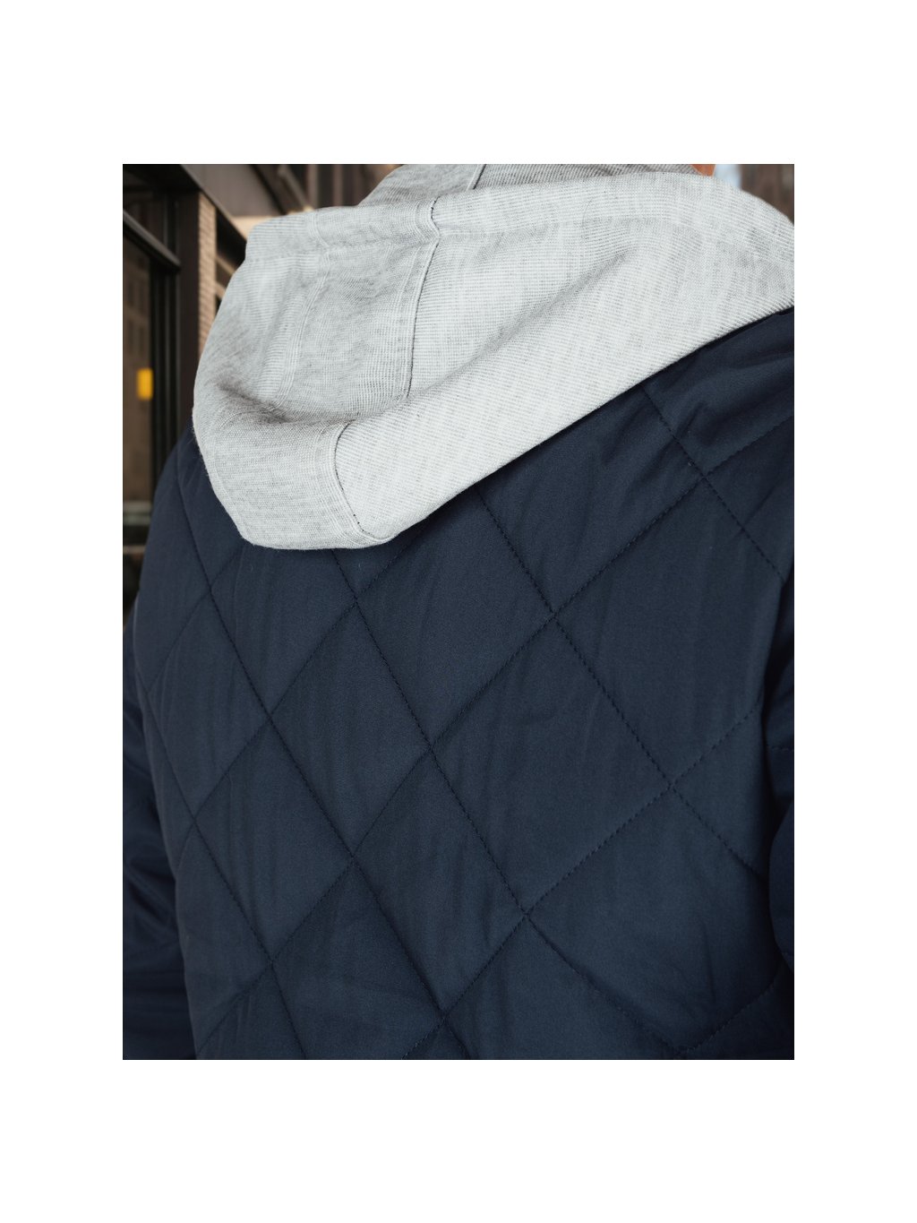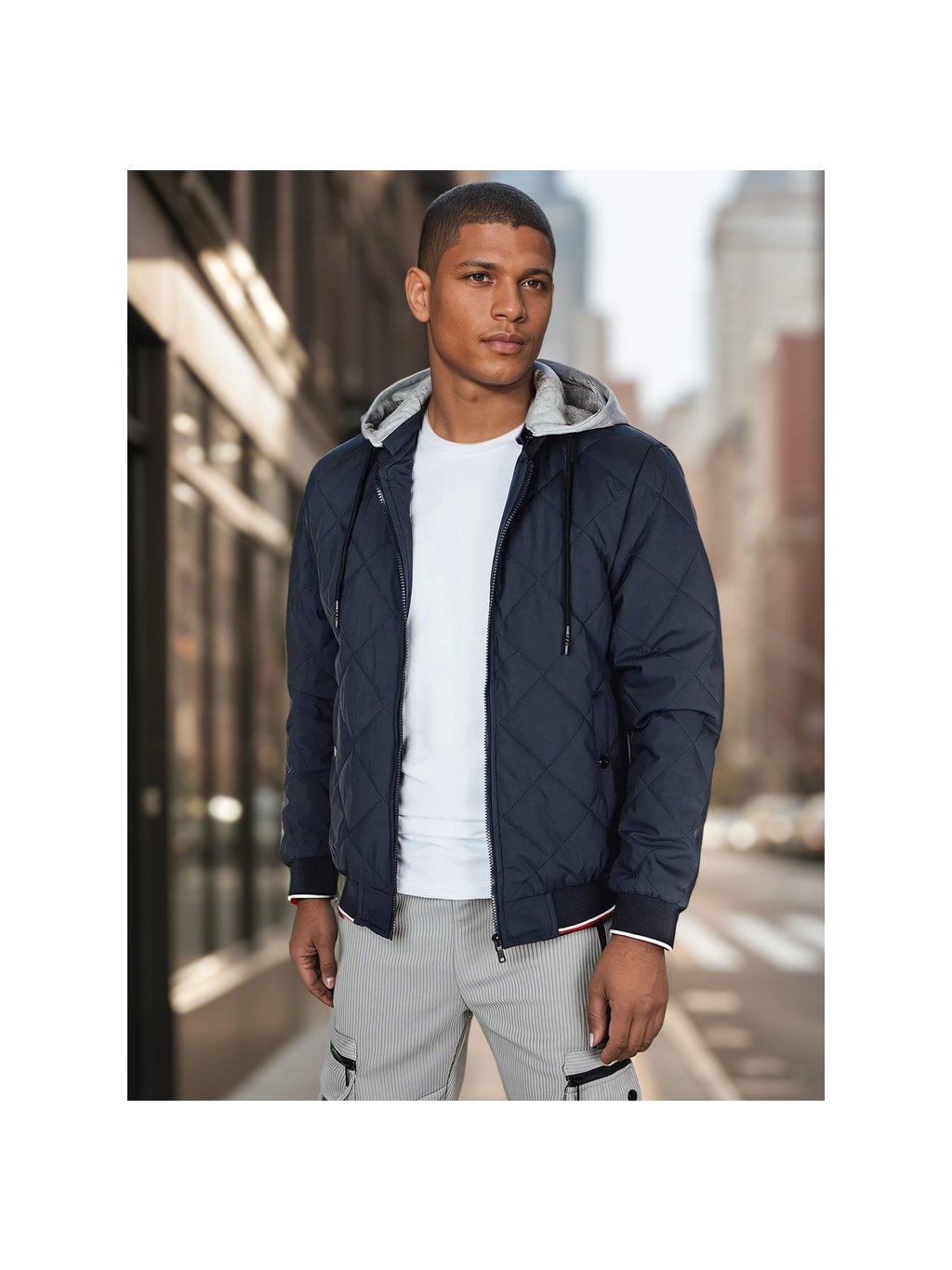 Férfi sötétkék átmeneti steppelt kabát kapucnival
