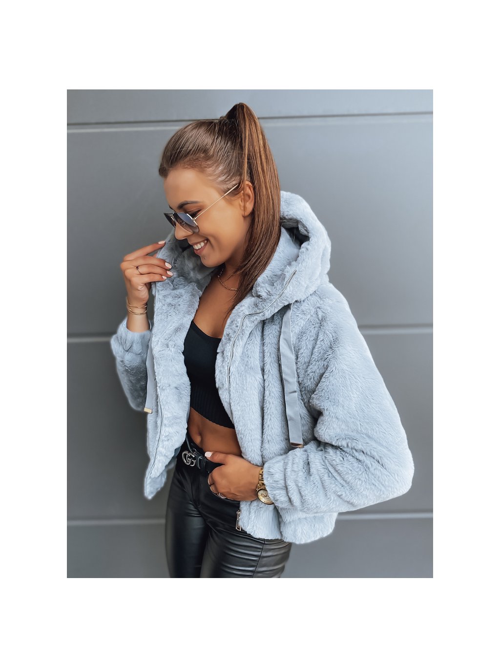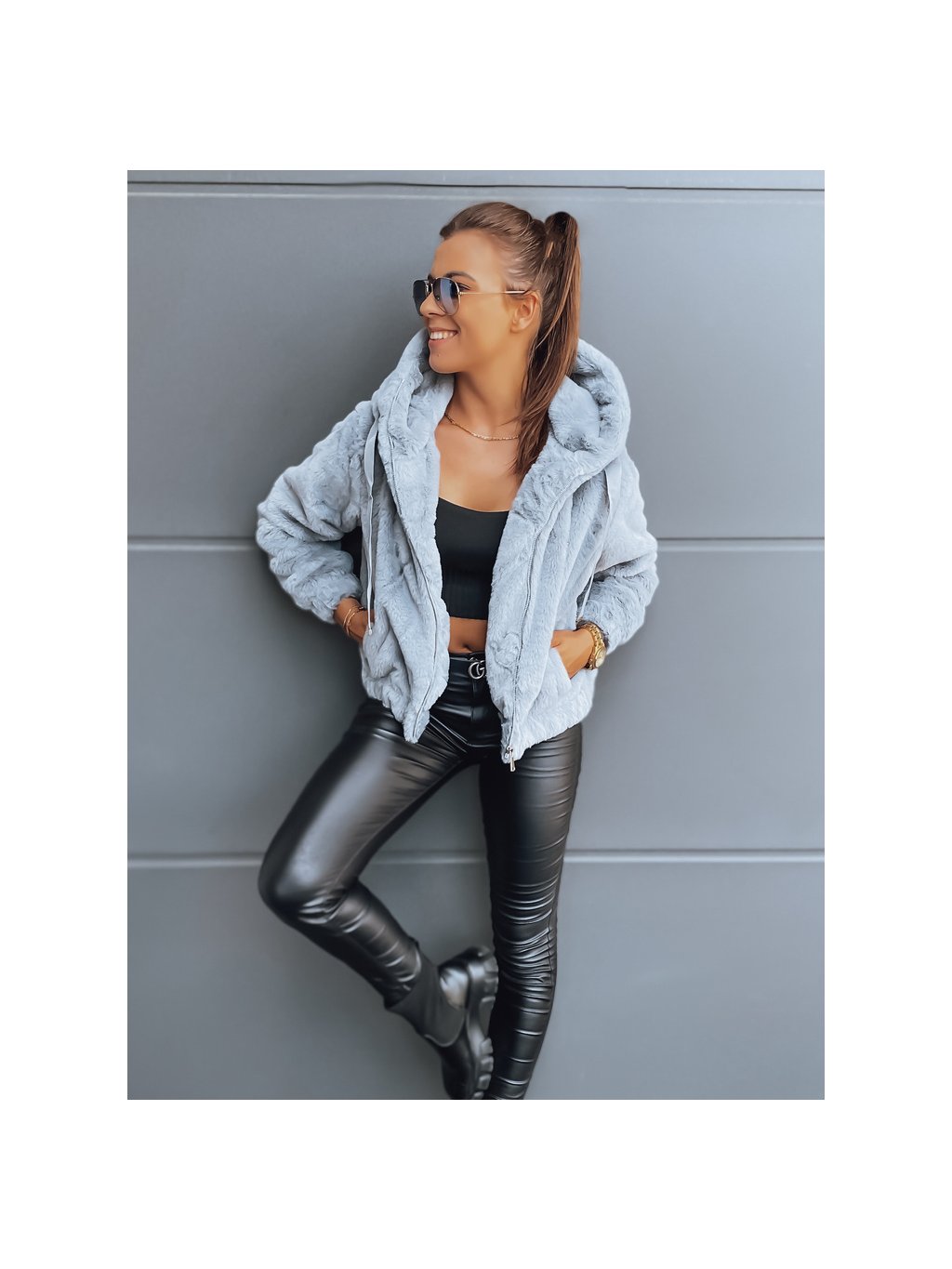 FRESCO szürke szőrös pulóver
