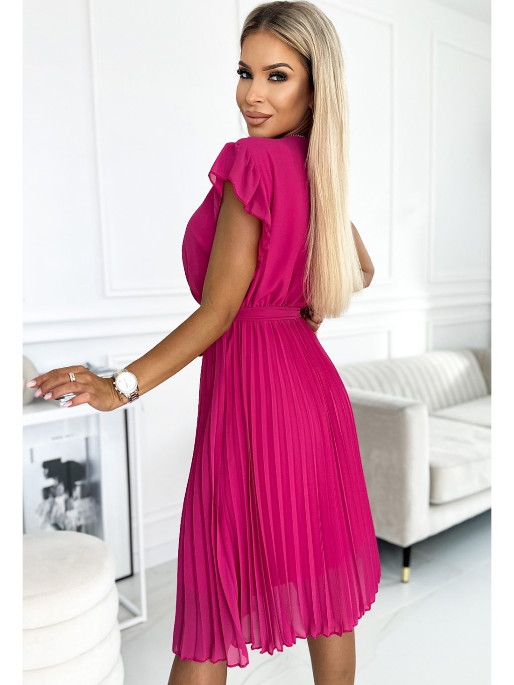 Fukszia színű rakott ruha fodrokkal a vállakon JENNA