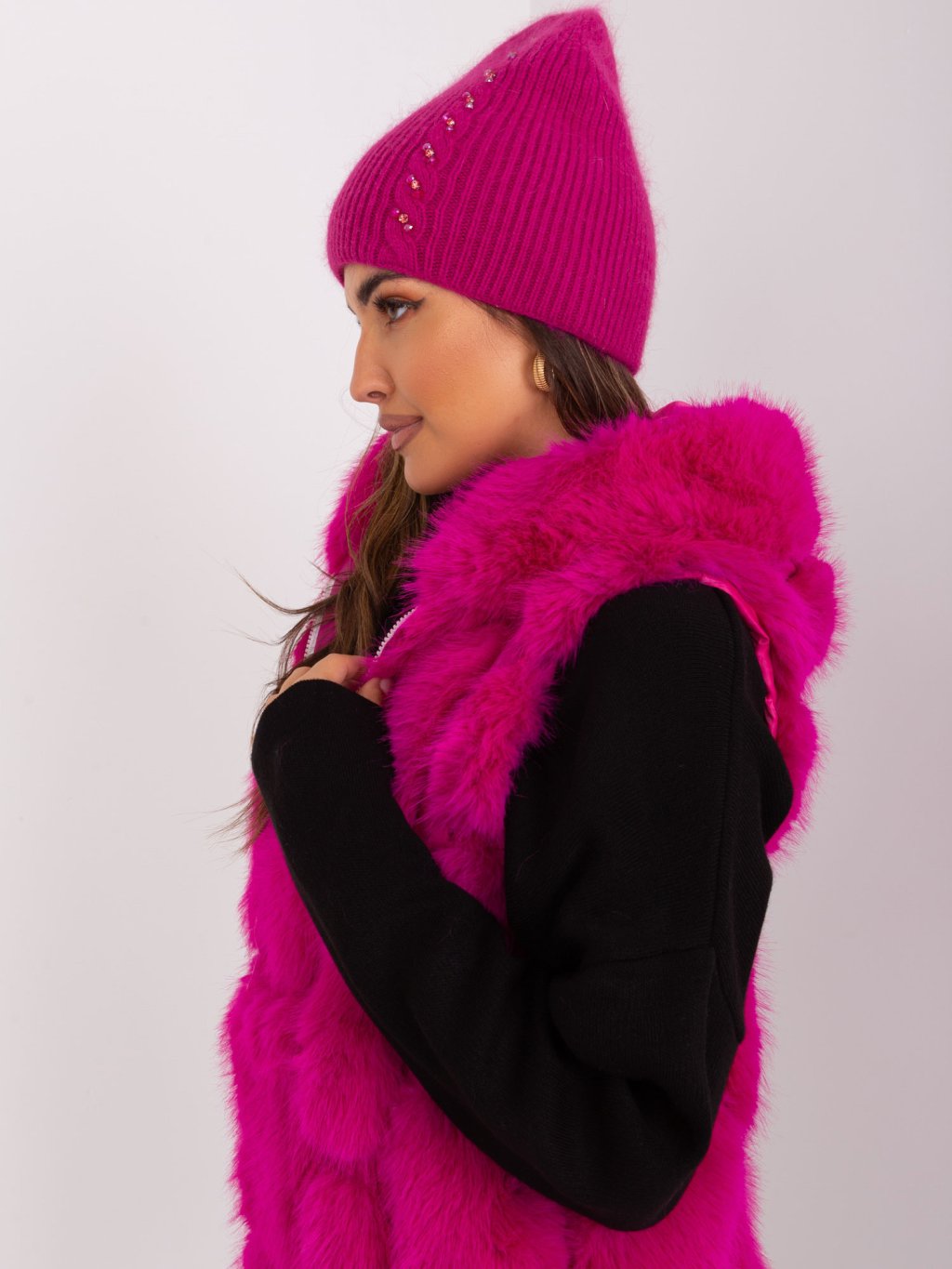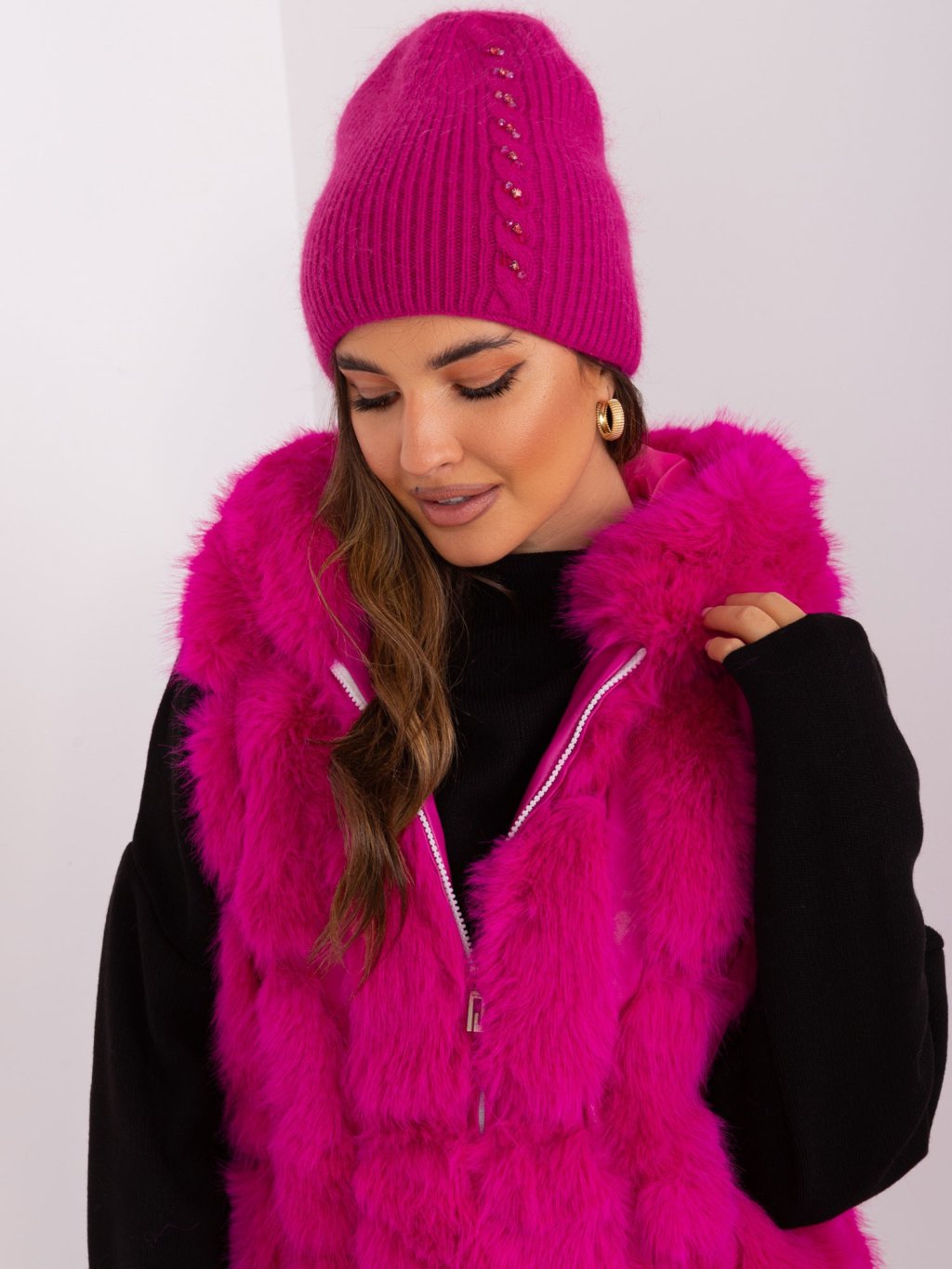 Fukszia téli sapka mintával