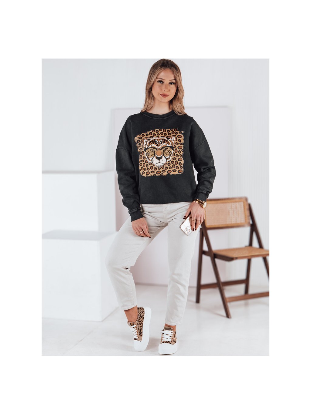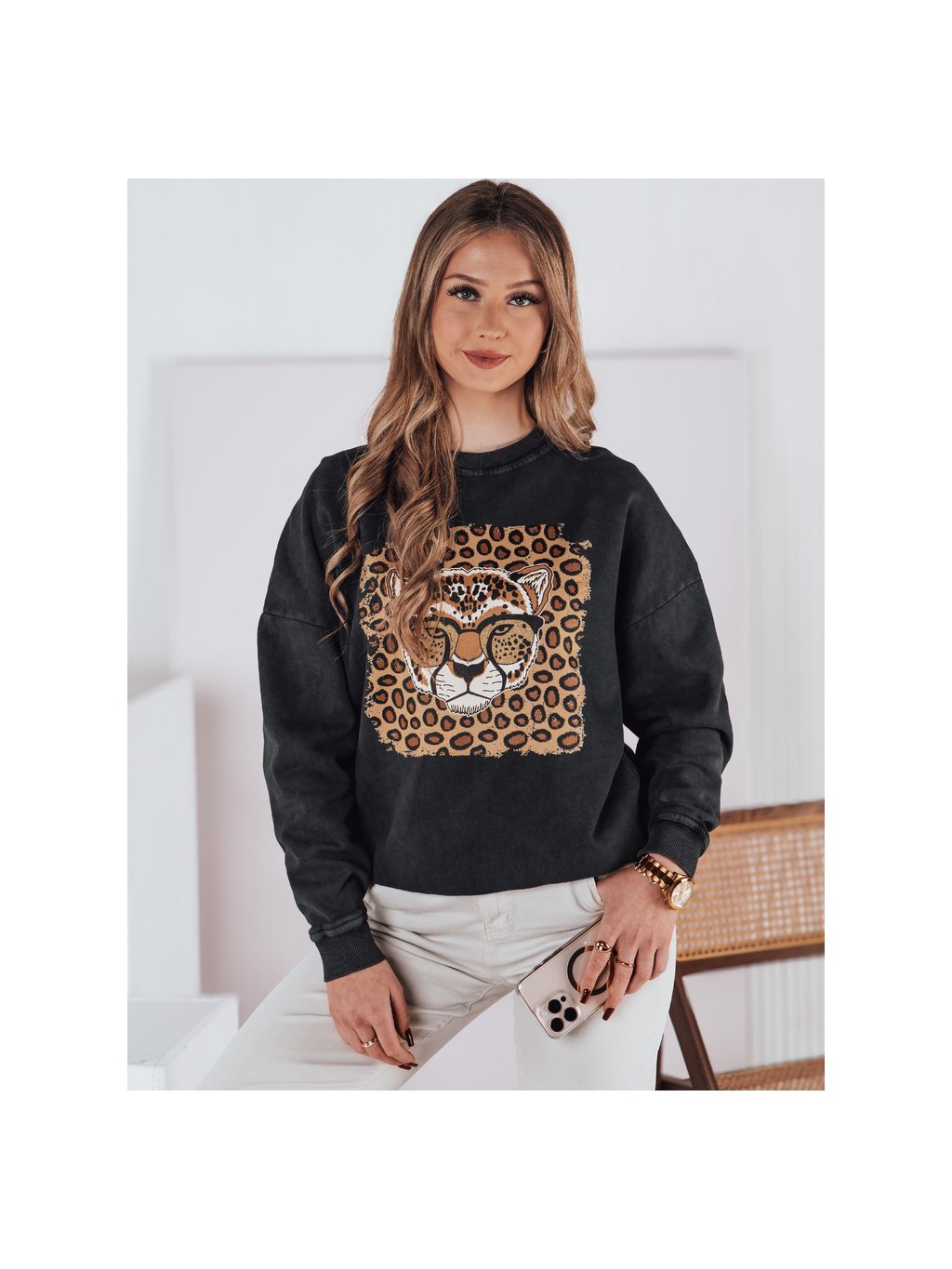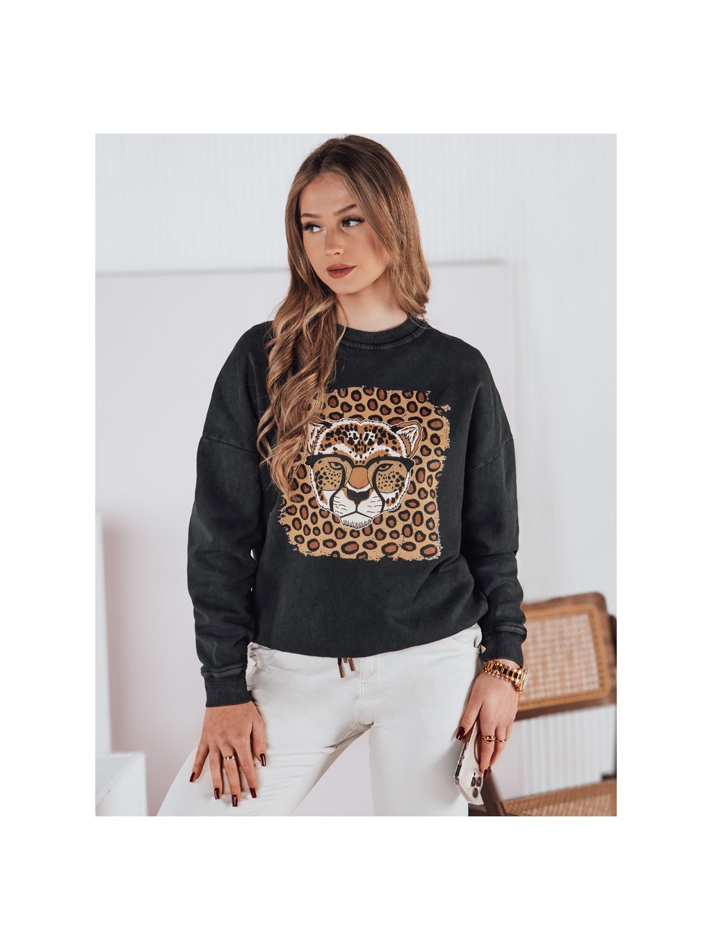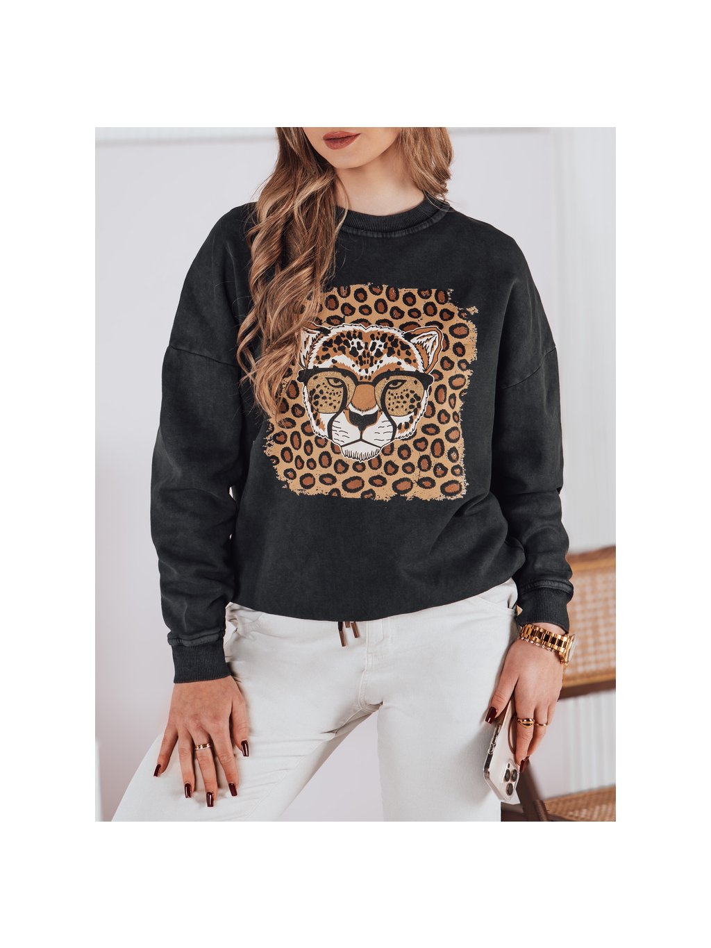 Grafit színű női pulóver állati motívummal CHEETAHART