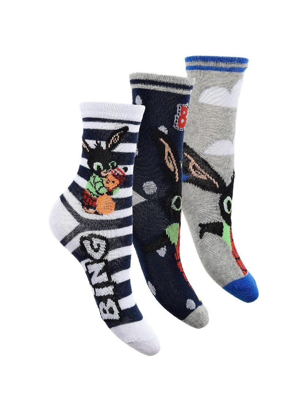 Három darabos Bing zokni - fehér-kék-szürke