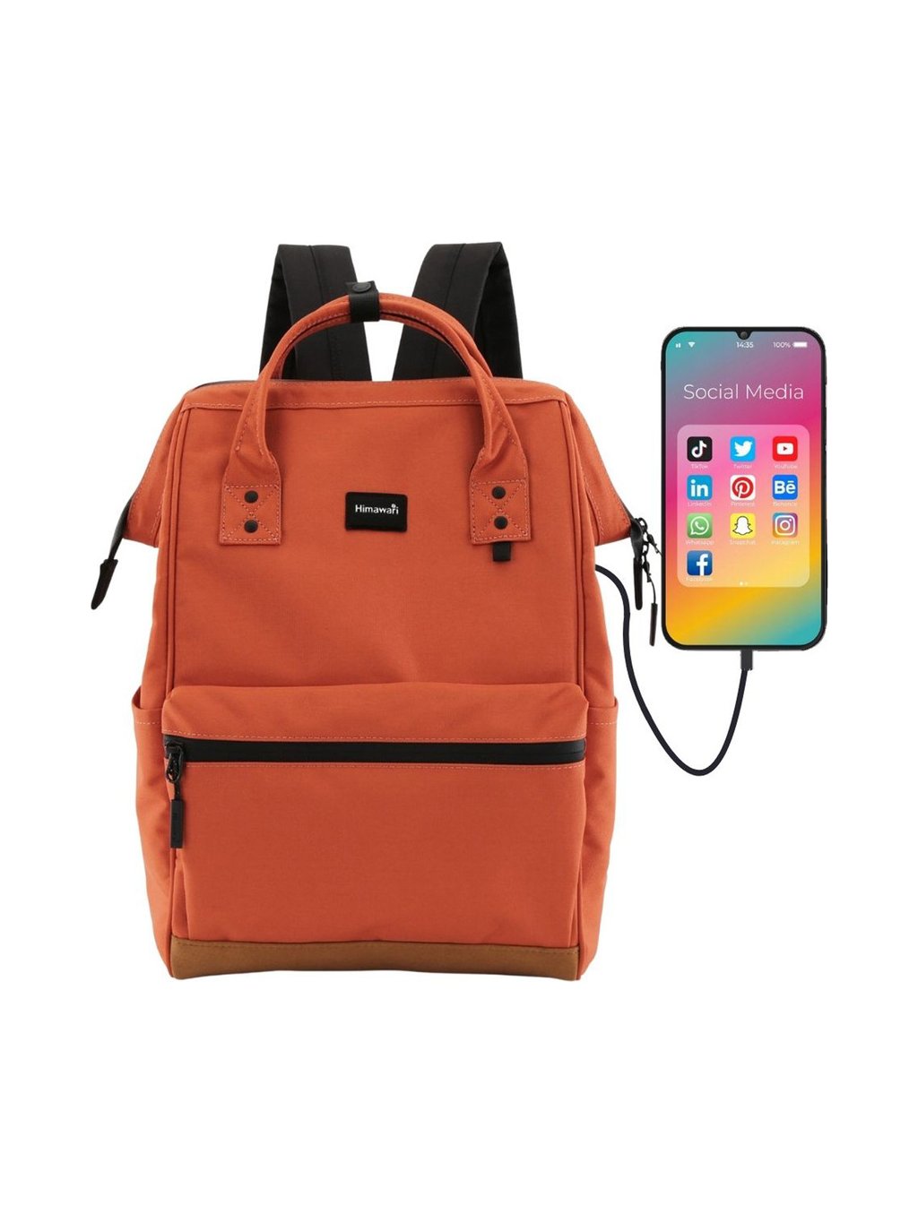 Himawari sötétnarancssárga női hátizsák elülső zsebbel és USB-porttal