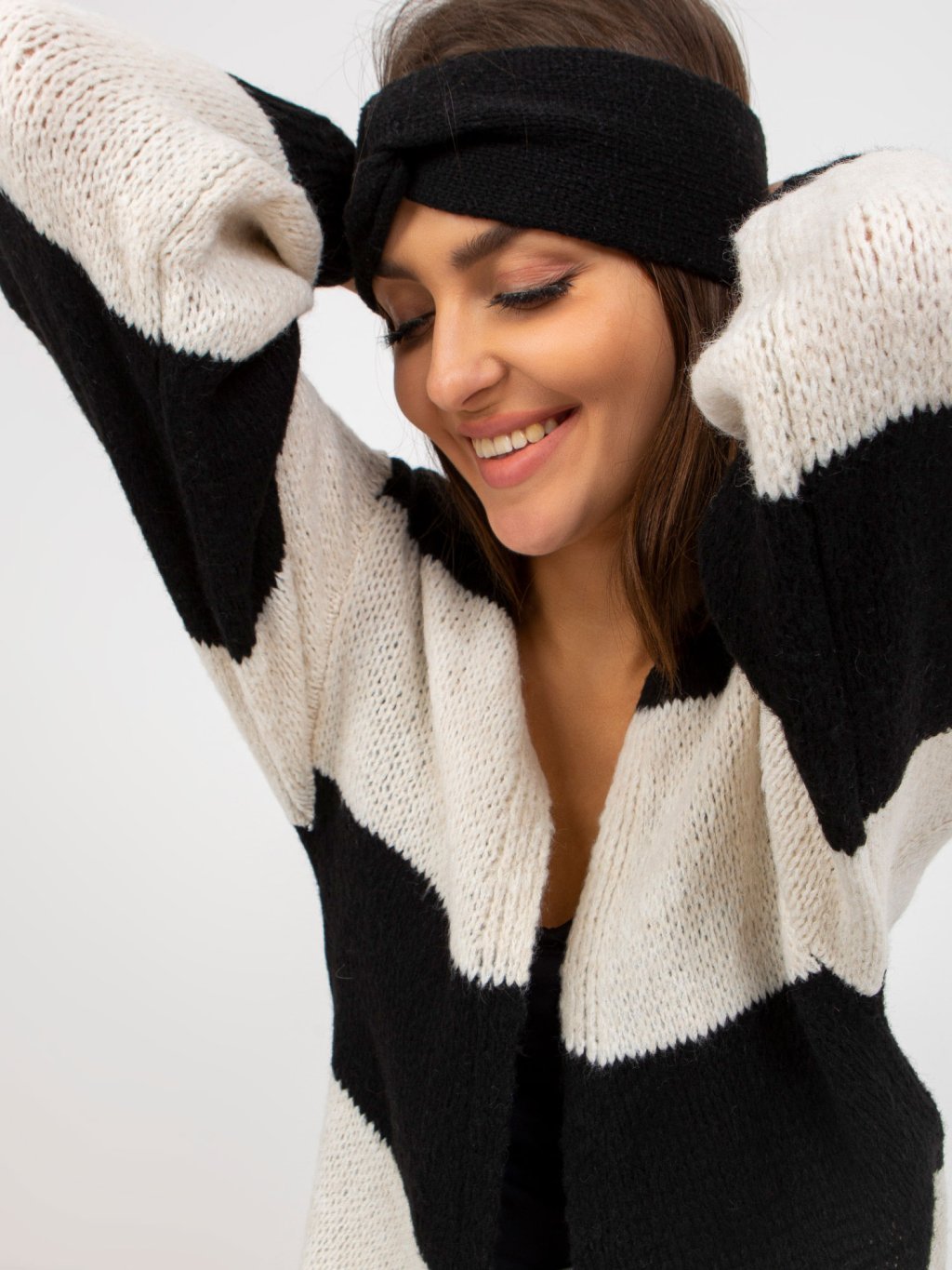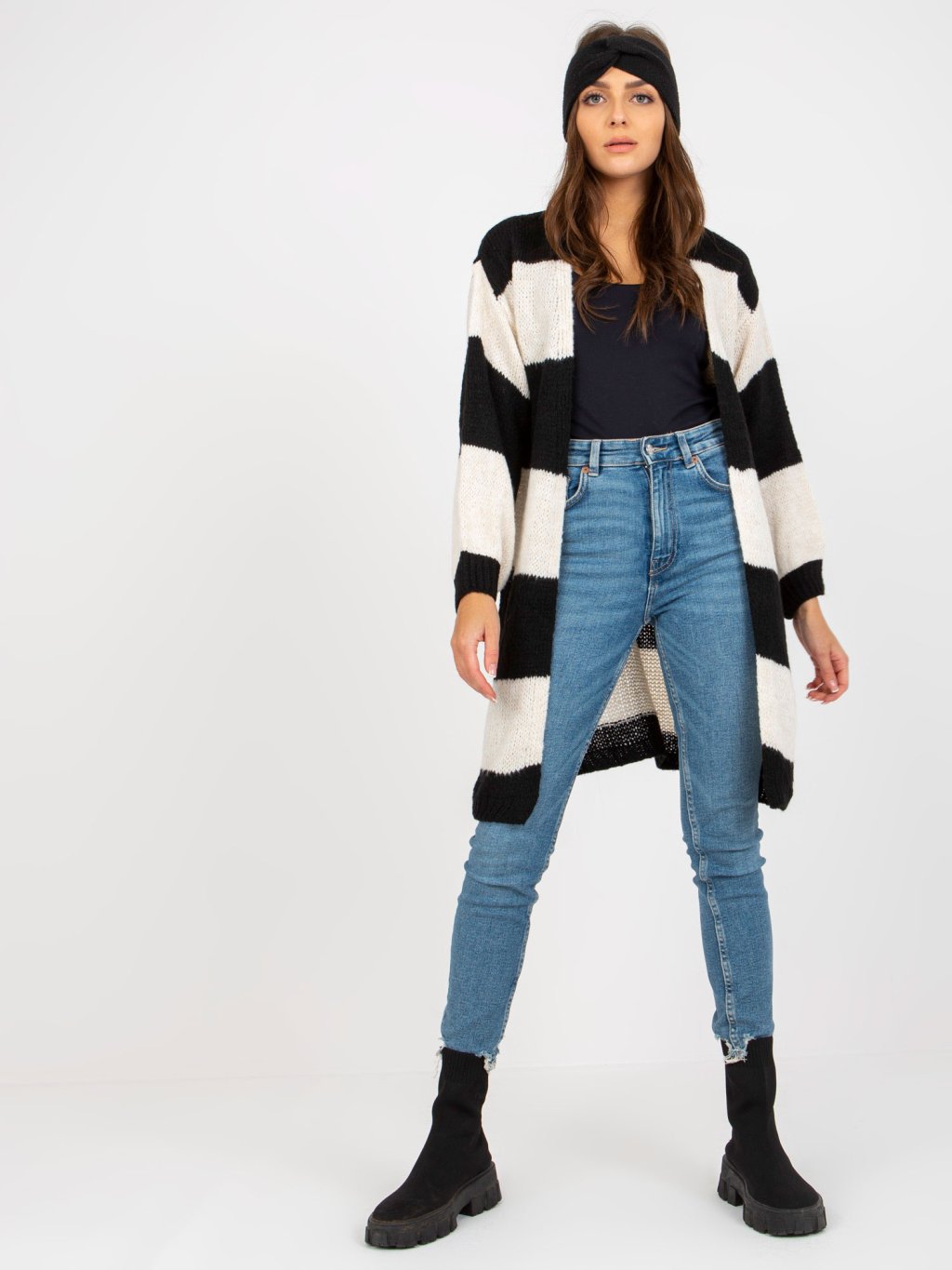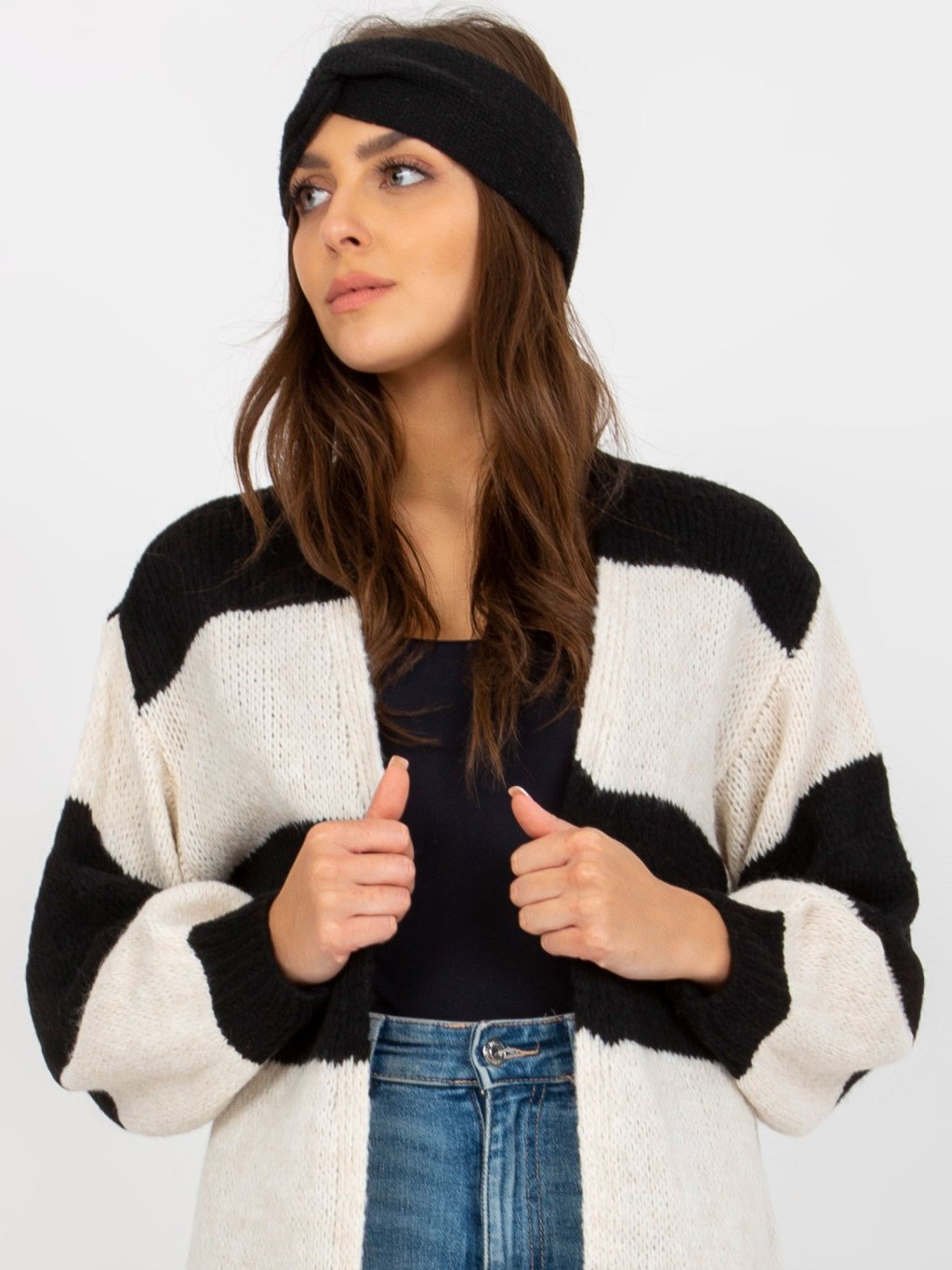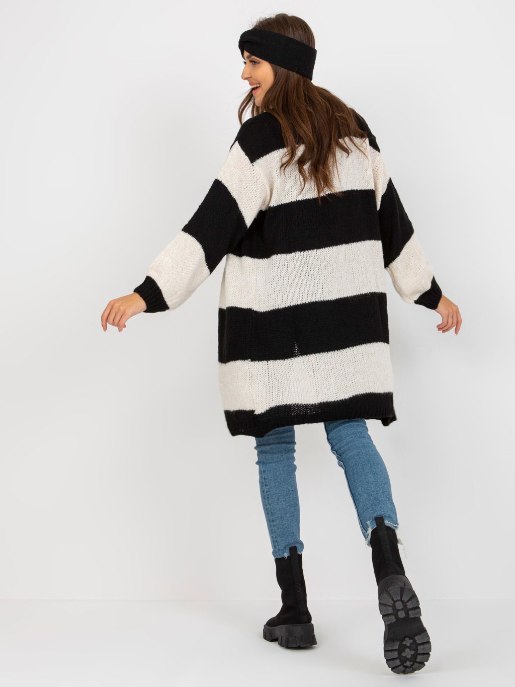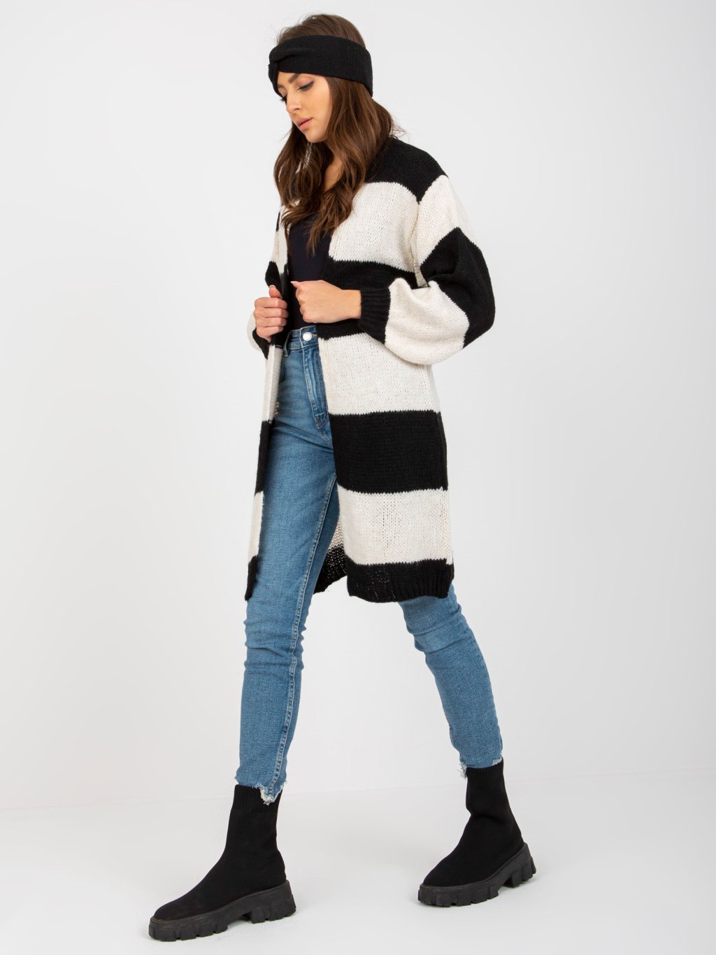 Hosszabb bő kötött kardigán - fehér-fekete