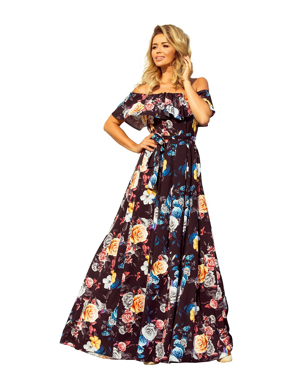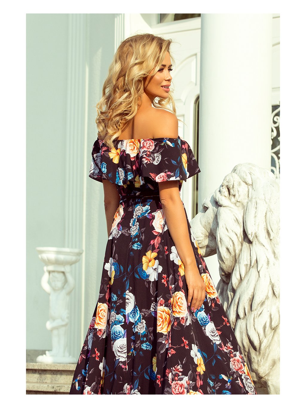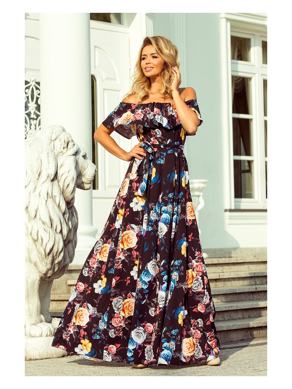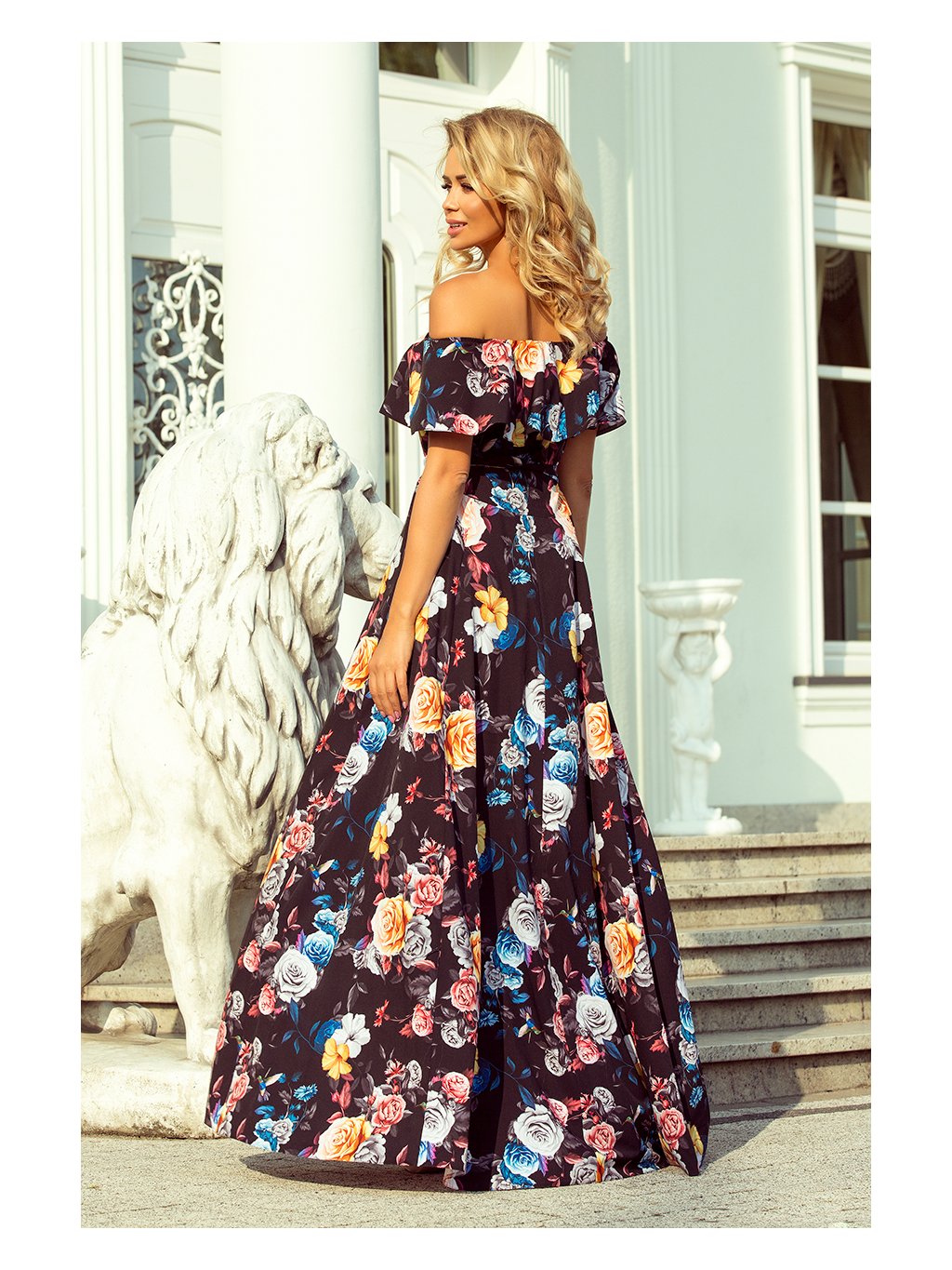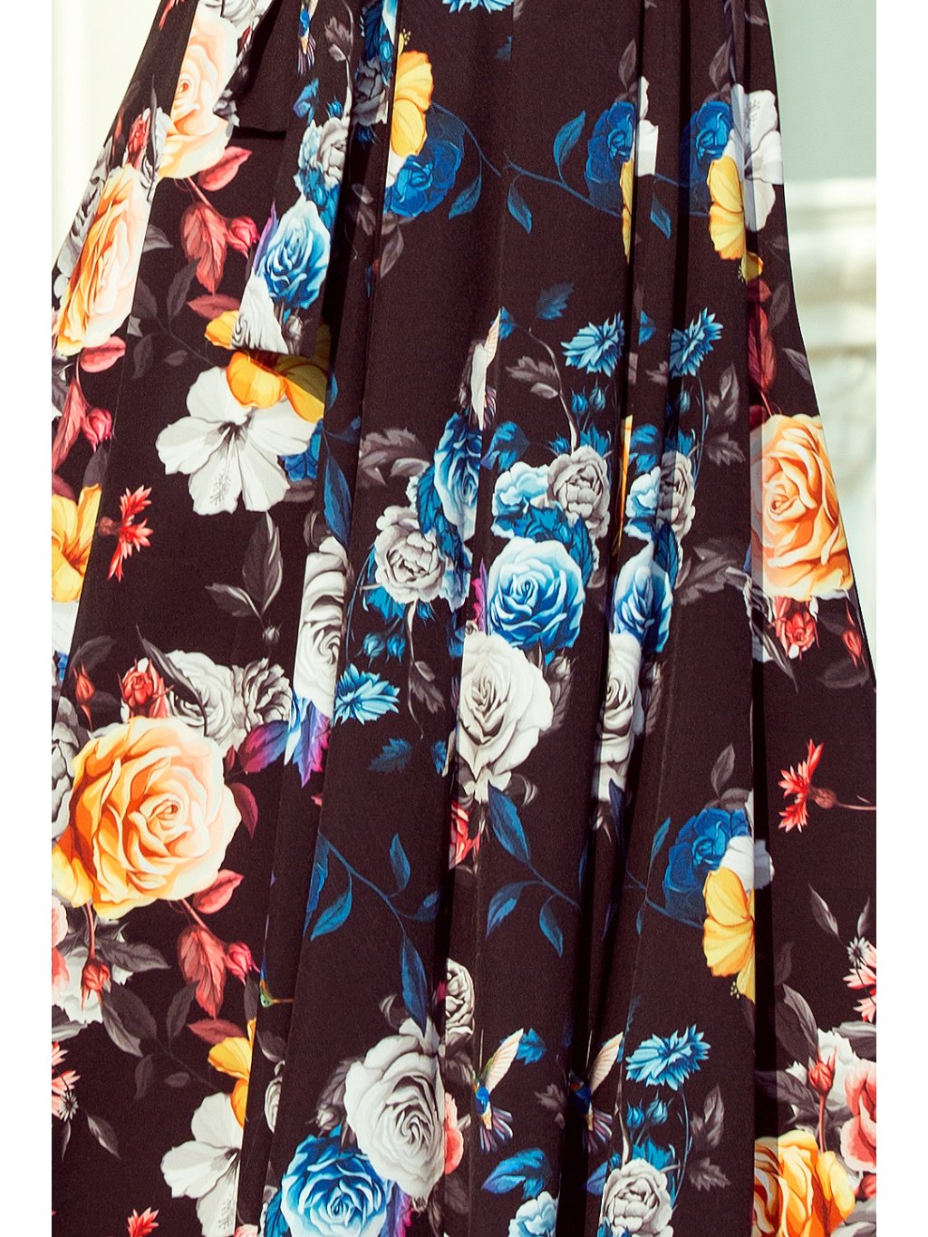 Hosszú fekete virágos ruha KATE