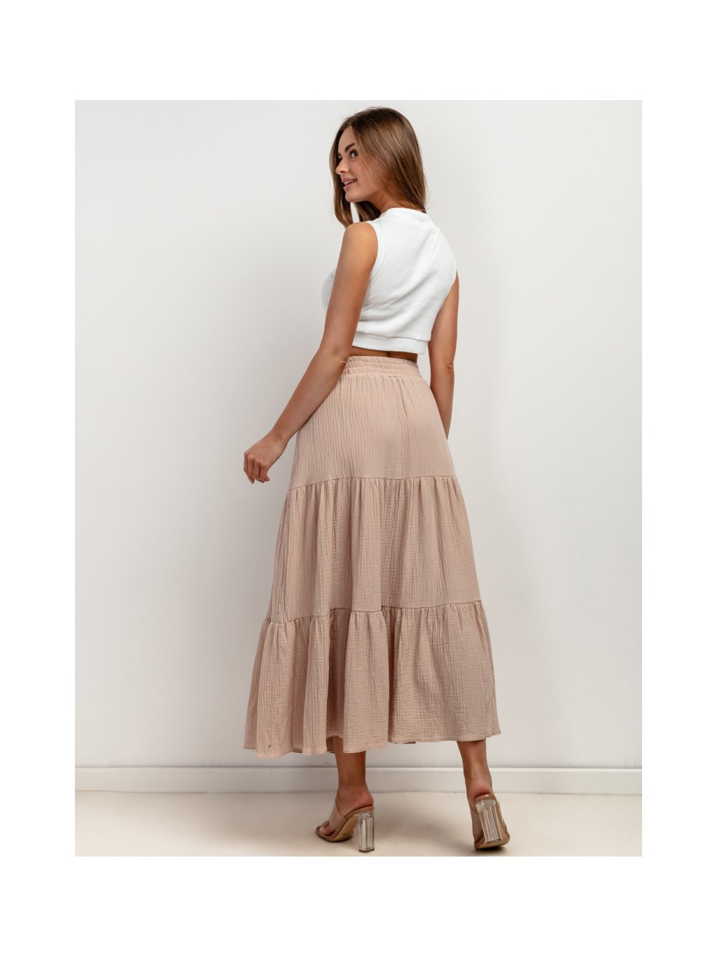 Hosszú női bézs szoknya fodrokkal, világos könnyű muszlinból