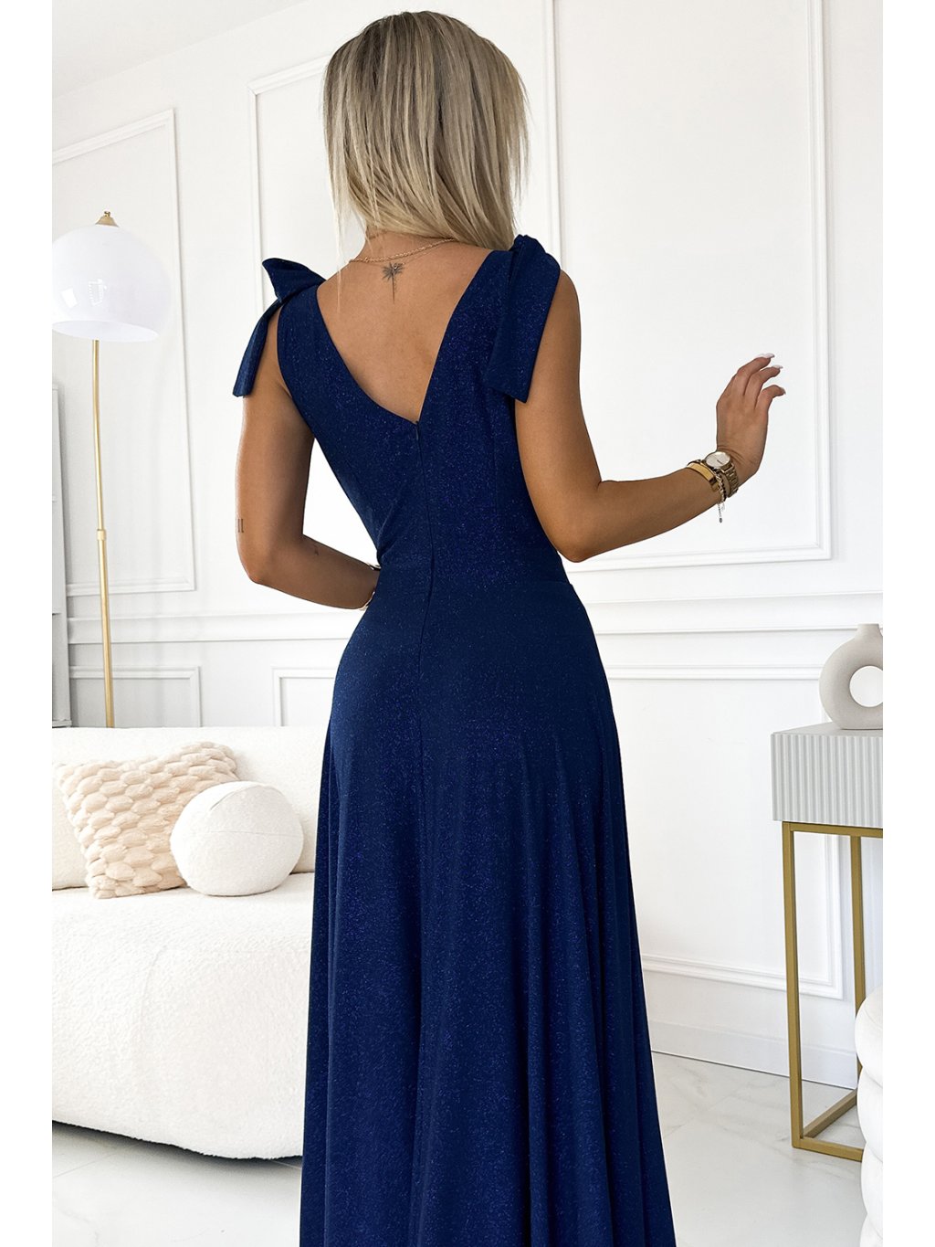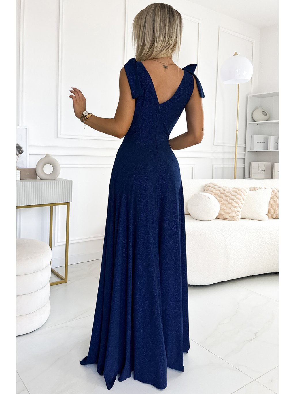 Hosszú sötétkék ruha nyakkivágással ELENA