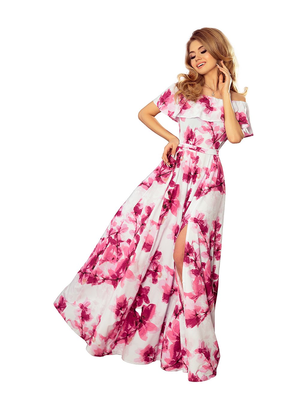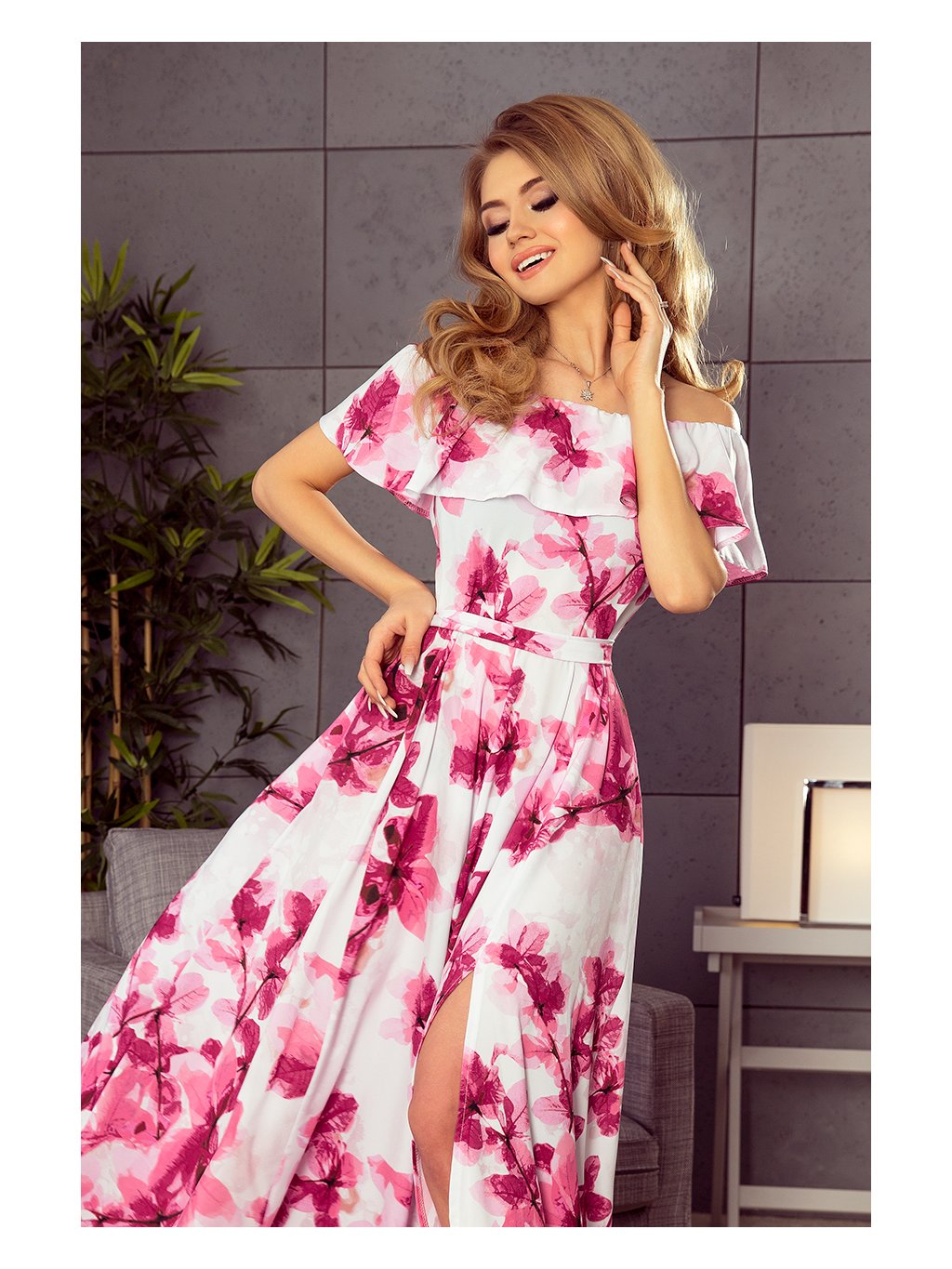 Hosszú virágos ruha fodorral KATE