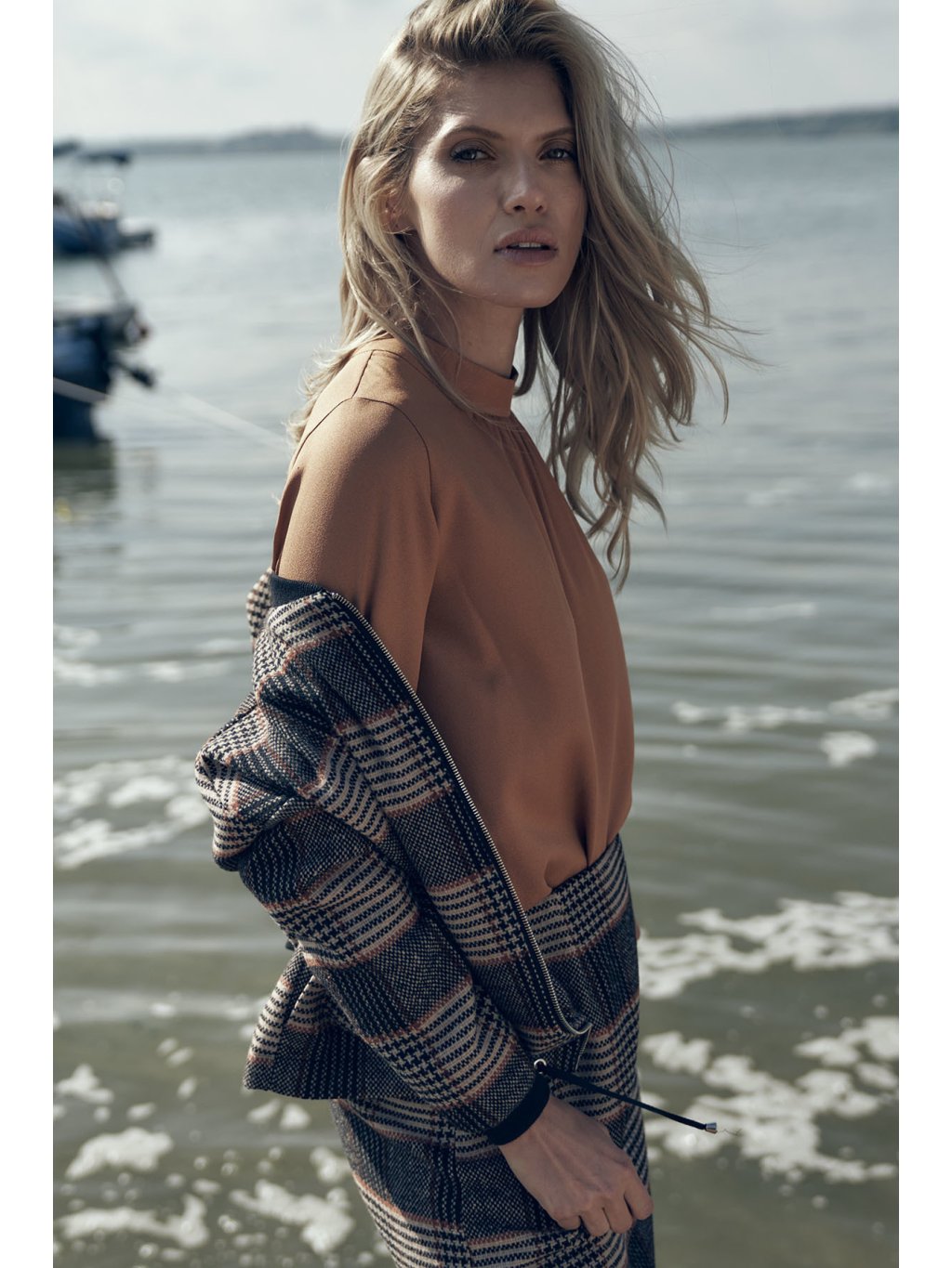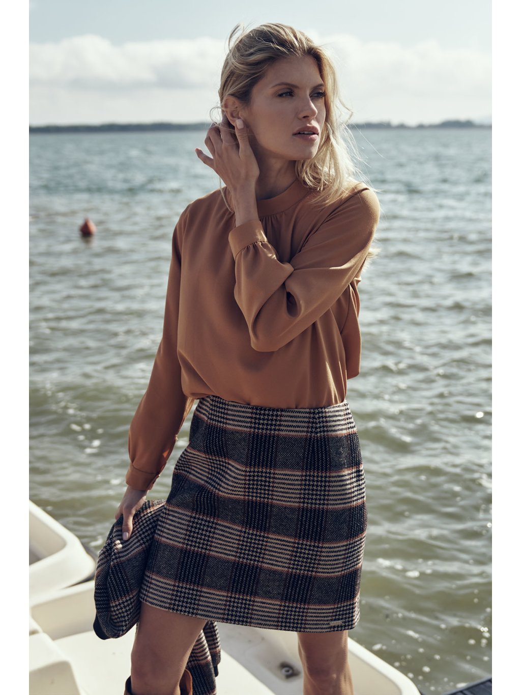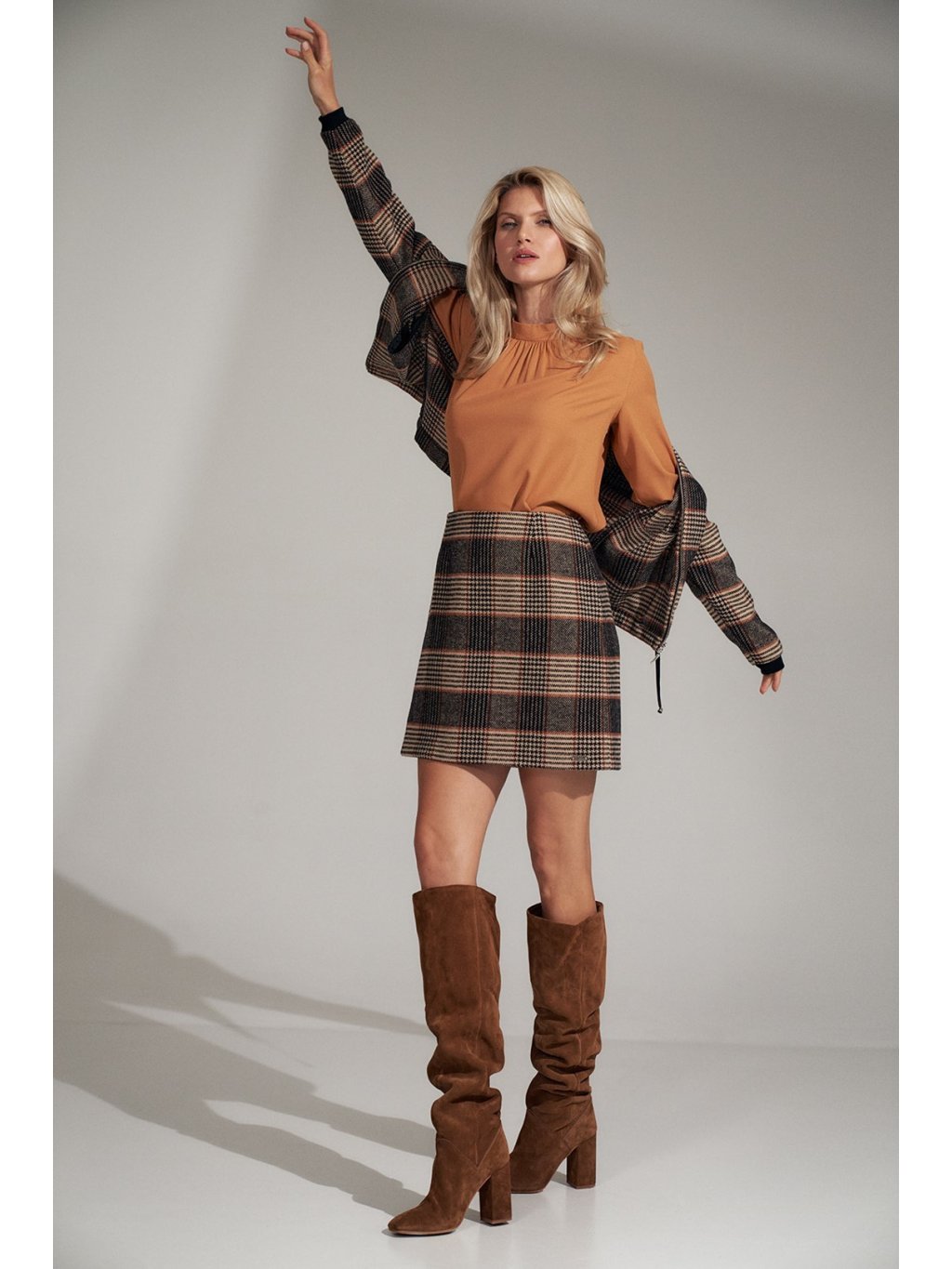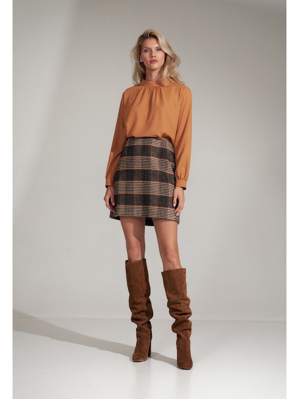 Karamell színű női elegáns blúz