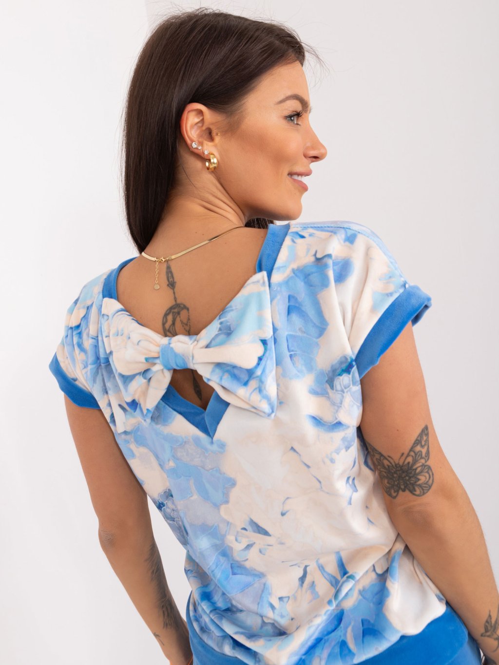 A képeken látható modell 164 cm magas, mellbőség 88 cm, derékbőség 62 cm, csípőbőség 90 cm.