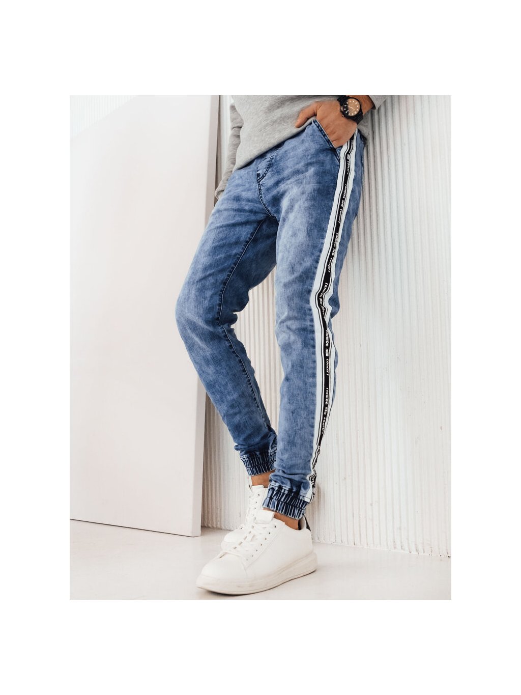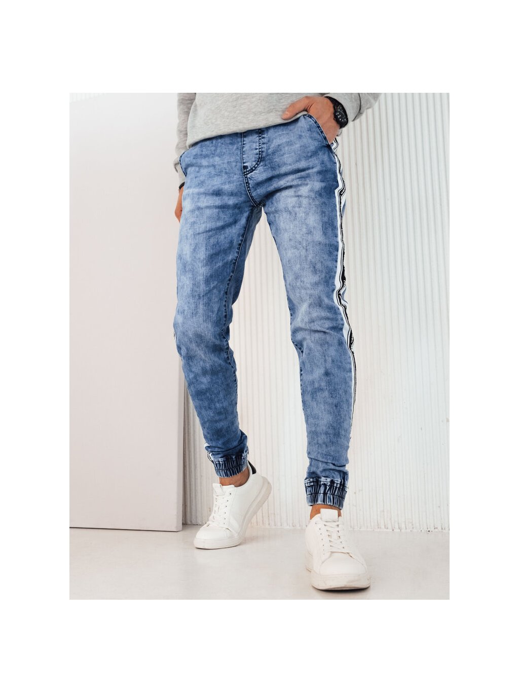 Kék farmer jogger, oldalsó csíkkal