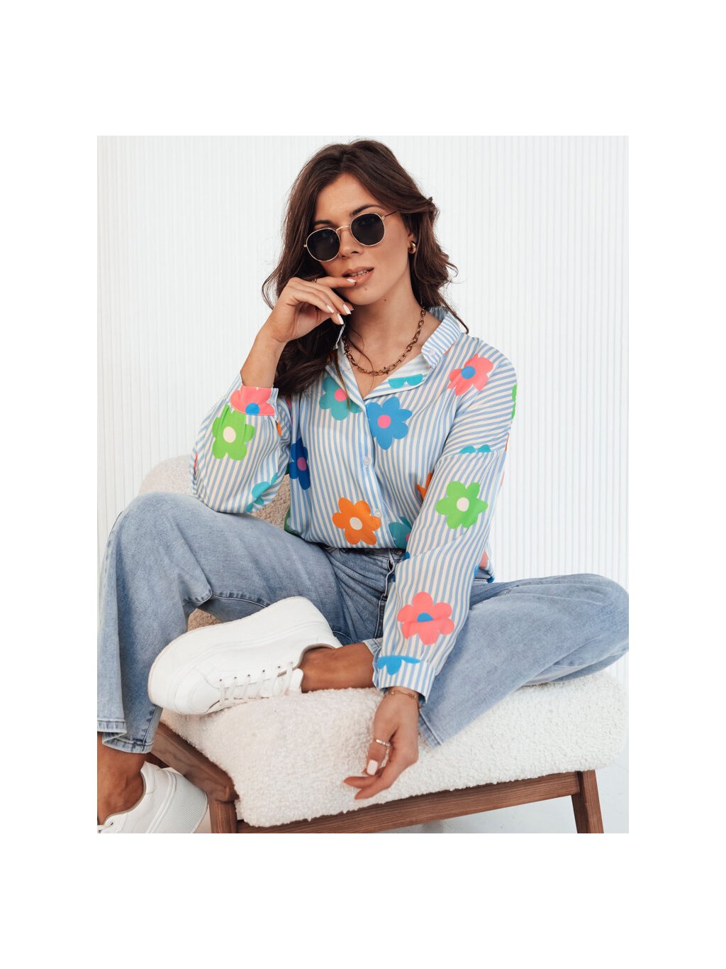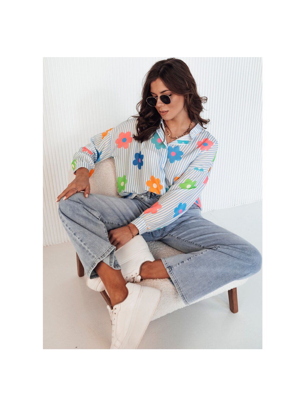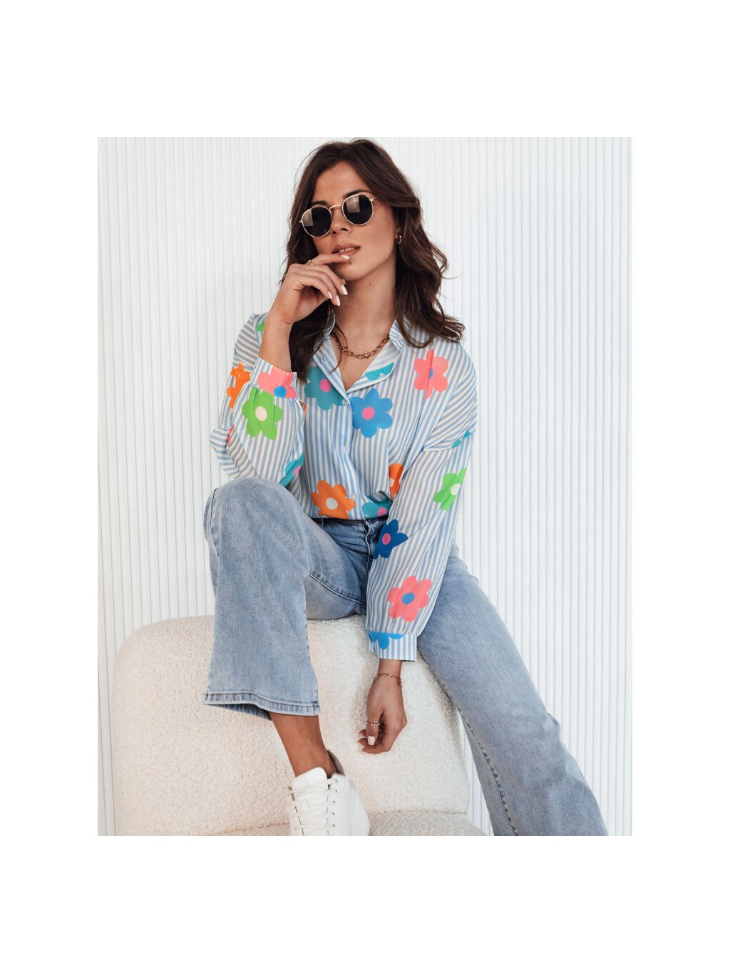 Kék-fehér csíkos oversize ing színes virágokkal PLANTINA