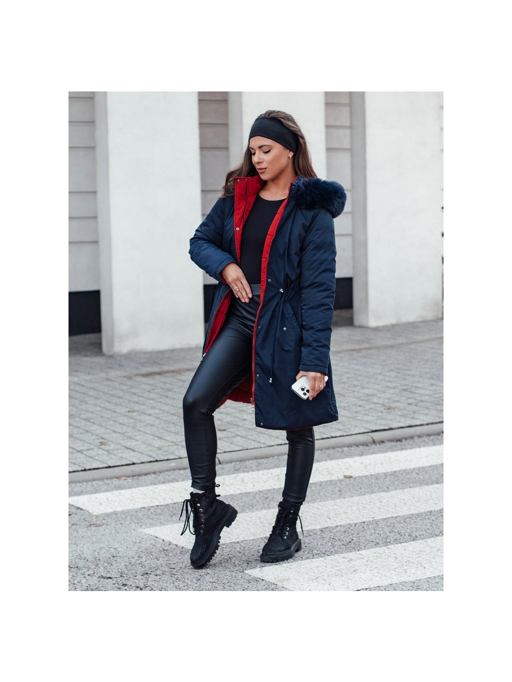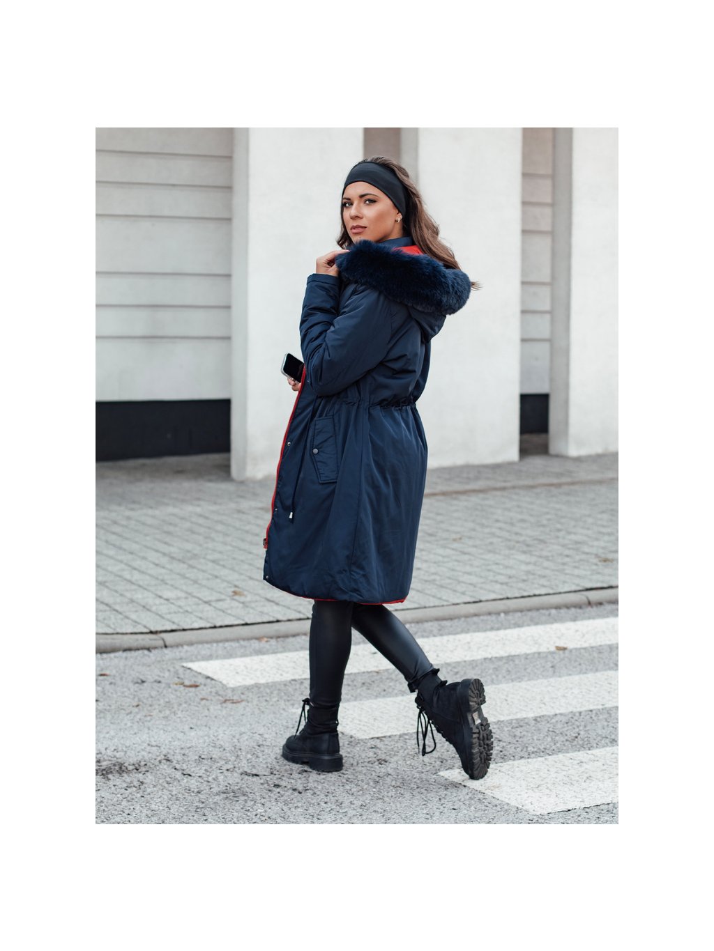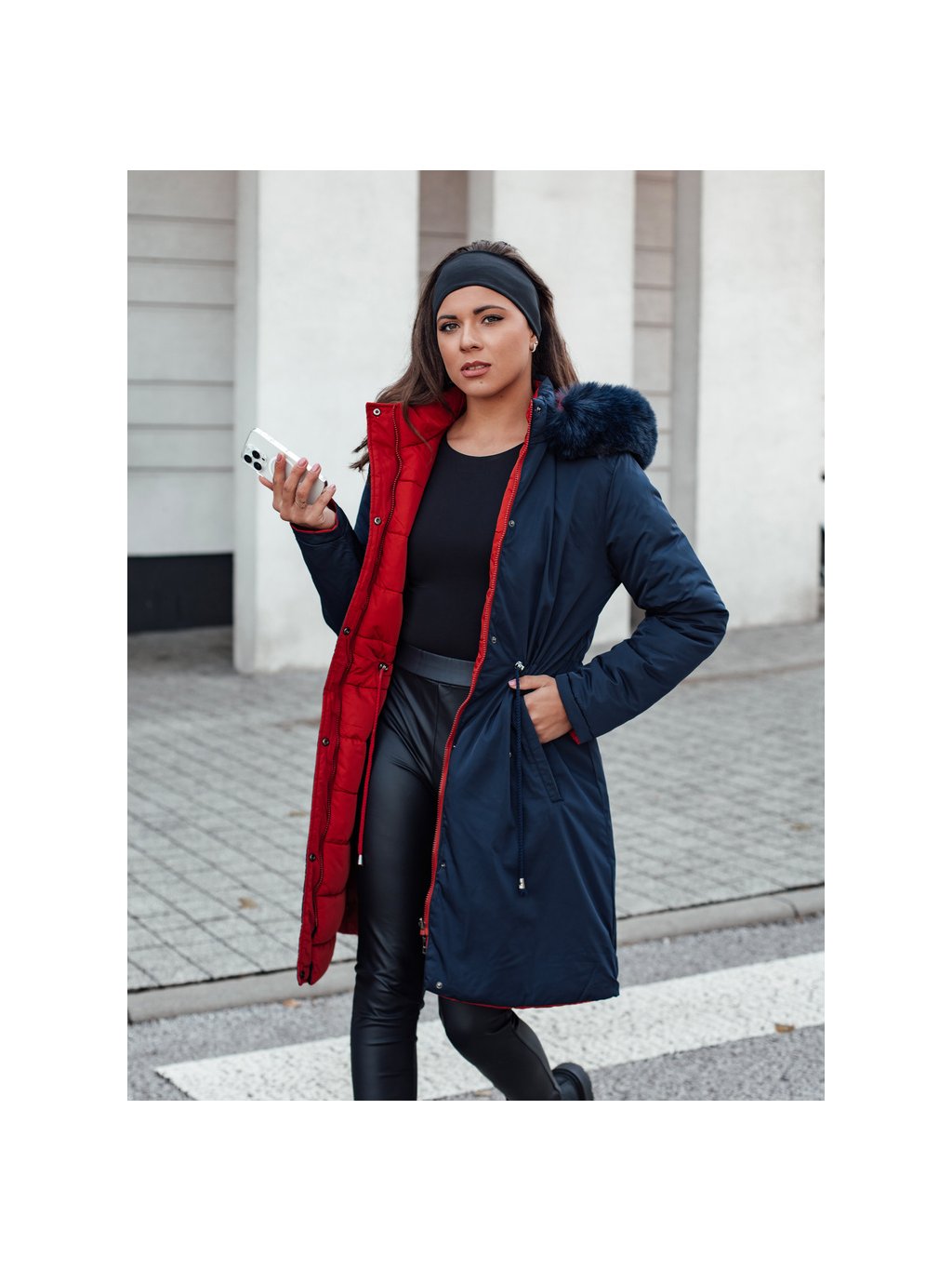 Kék-piros női kifordítható téli kabát kapucnival TRENDNEL