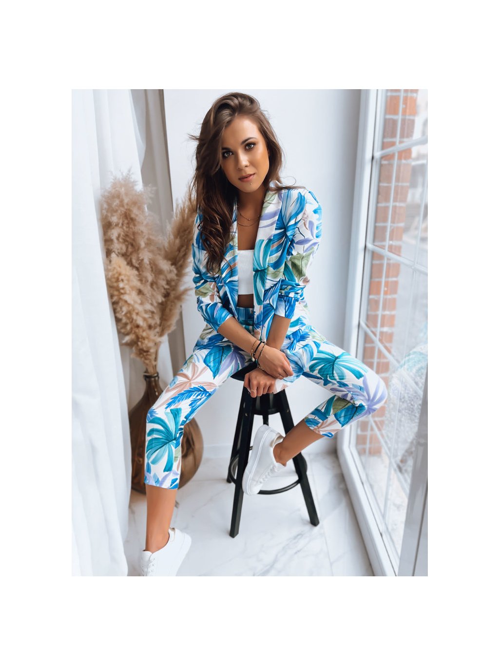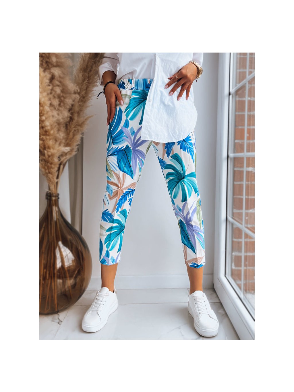 Kék-zöld virágos 3/4 nadrág FLOWER GARDEN