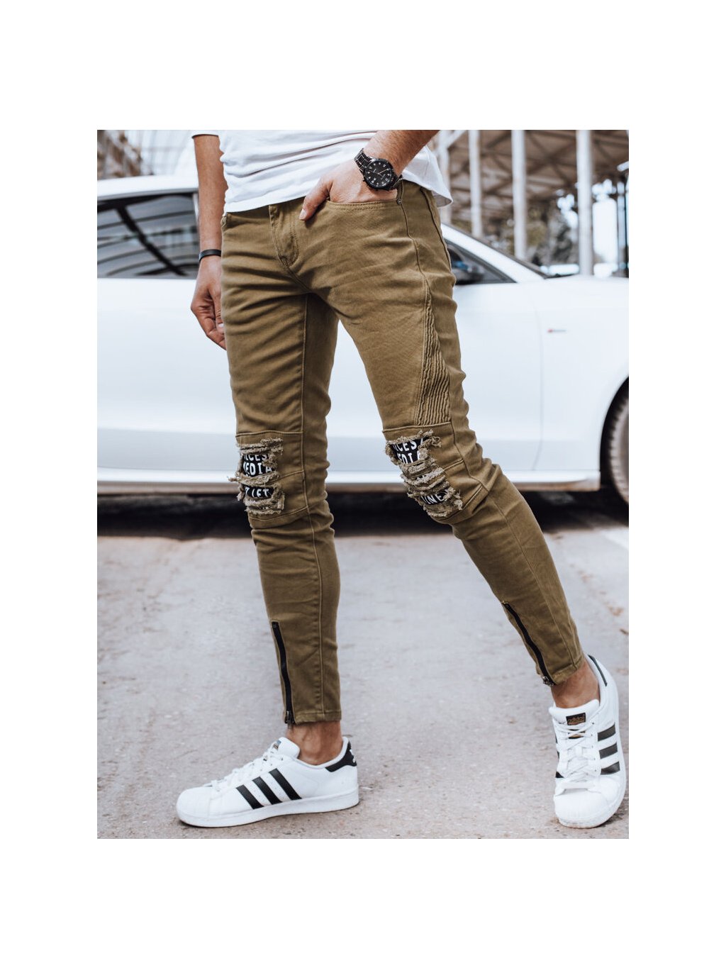 Khaki koptatott férfi farmernadrág cipzárakkal