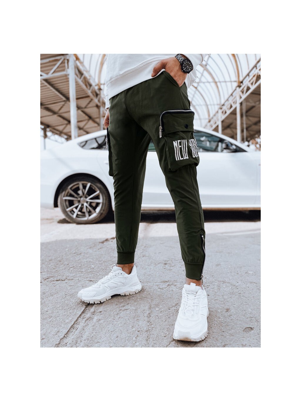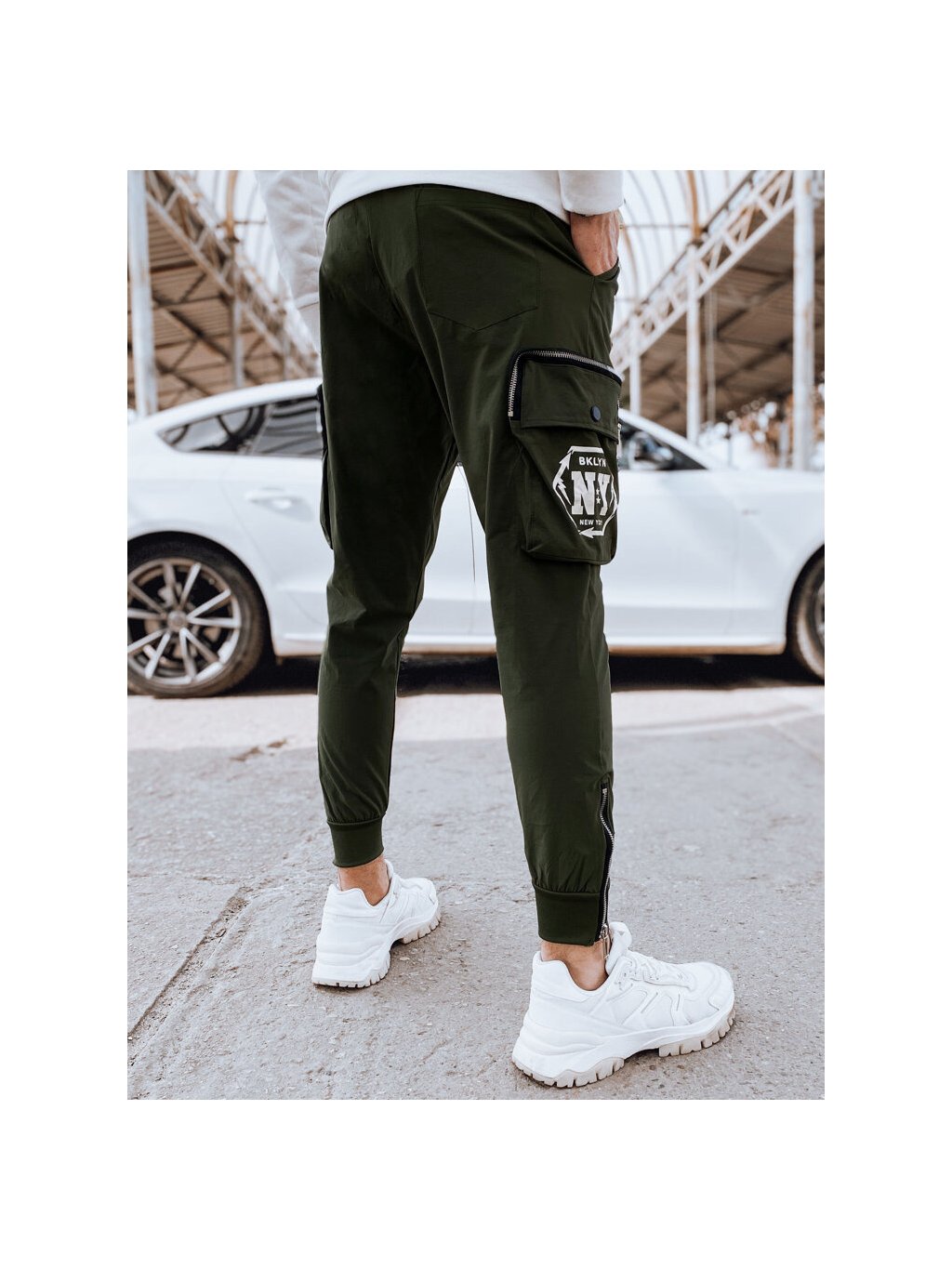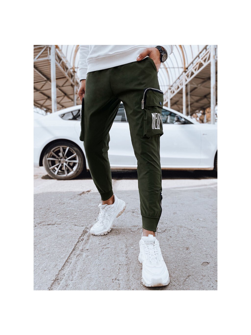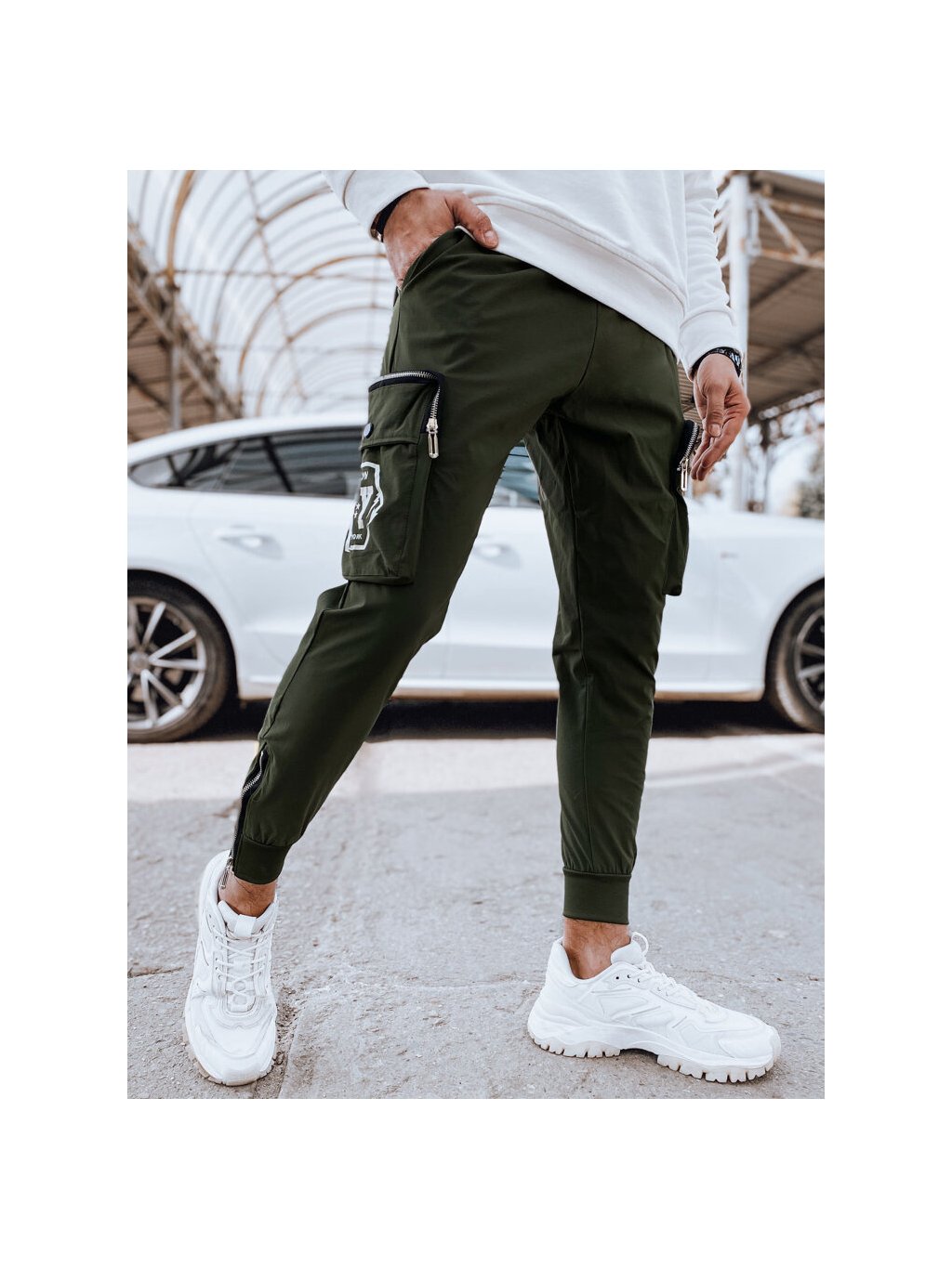 Khaki színű férfi jogger melegítőnadrág zsebekkel