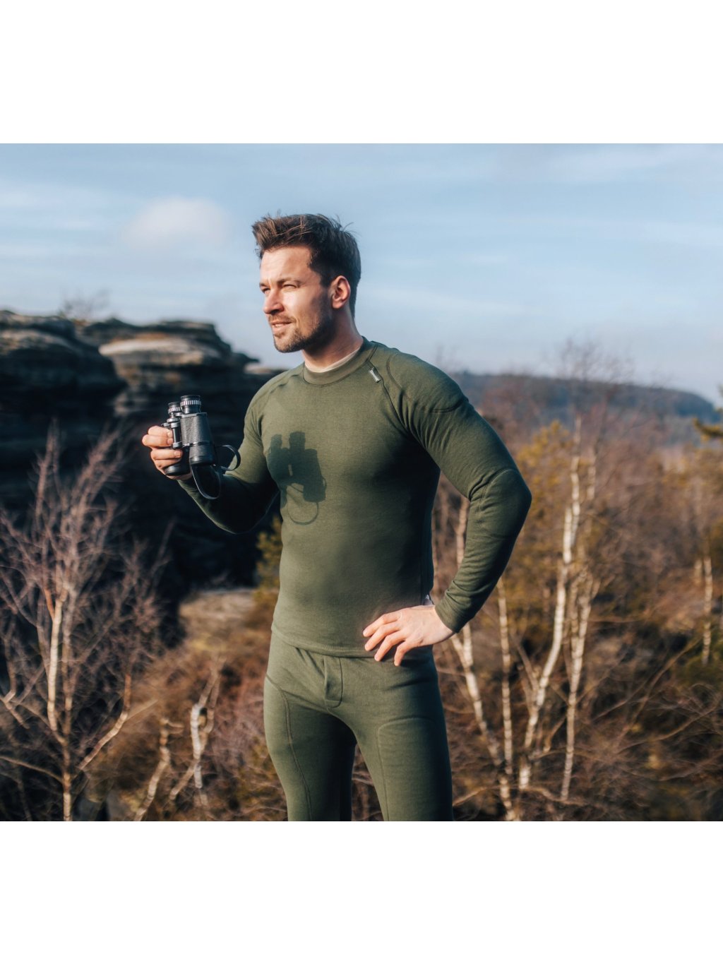 Khaki színű férfi meleg póló vadászoknak