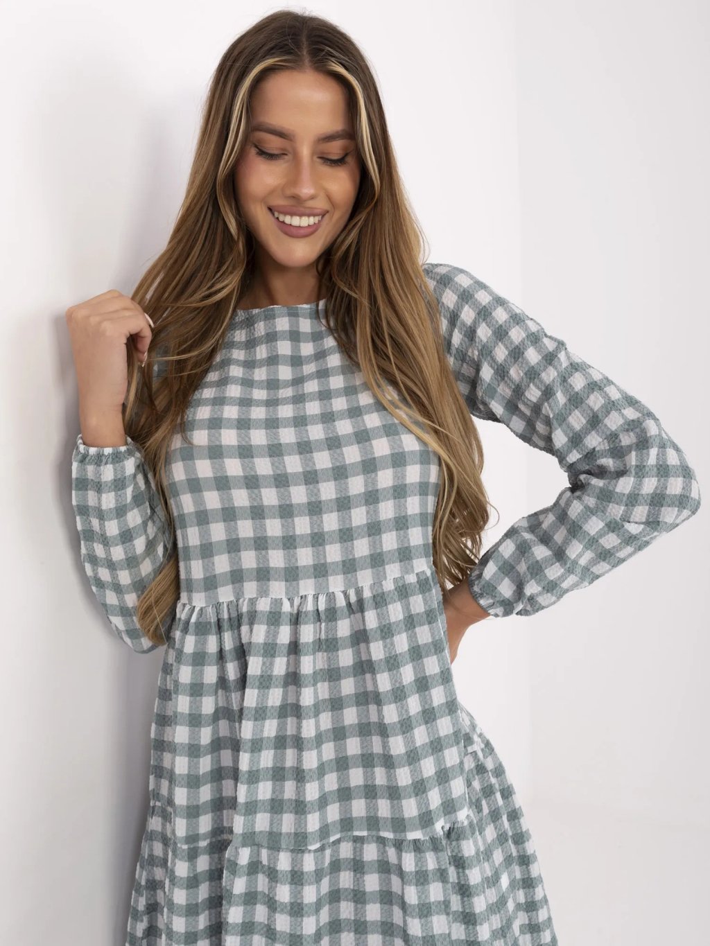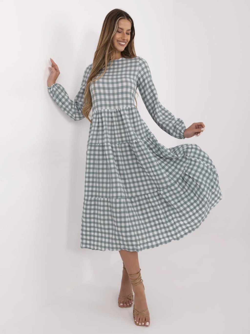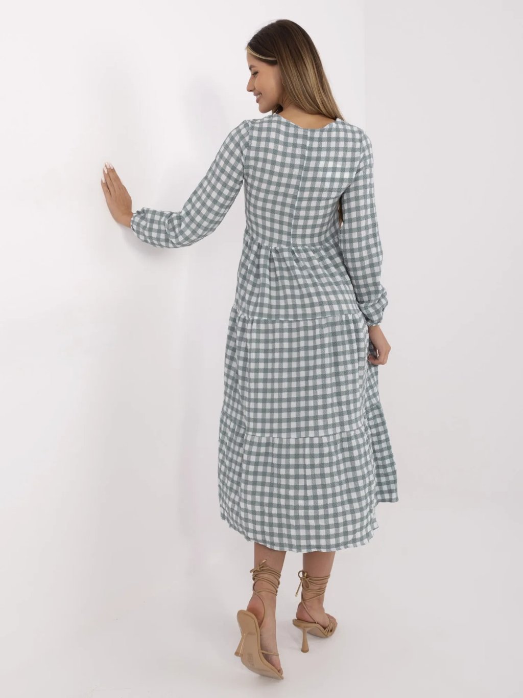 A képeken látható modell 176 cm magas, mellkörmérete 83 cm, derékbősége 55 cm, csípőbősége 88 cm.