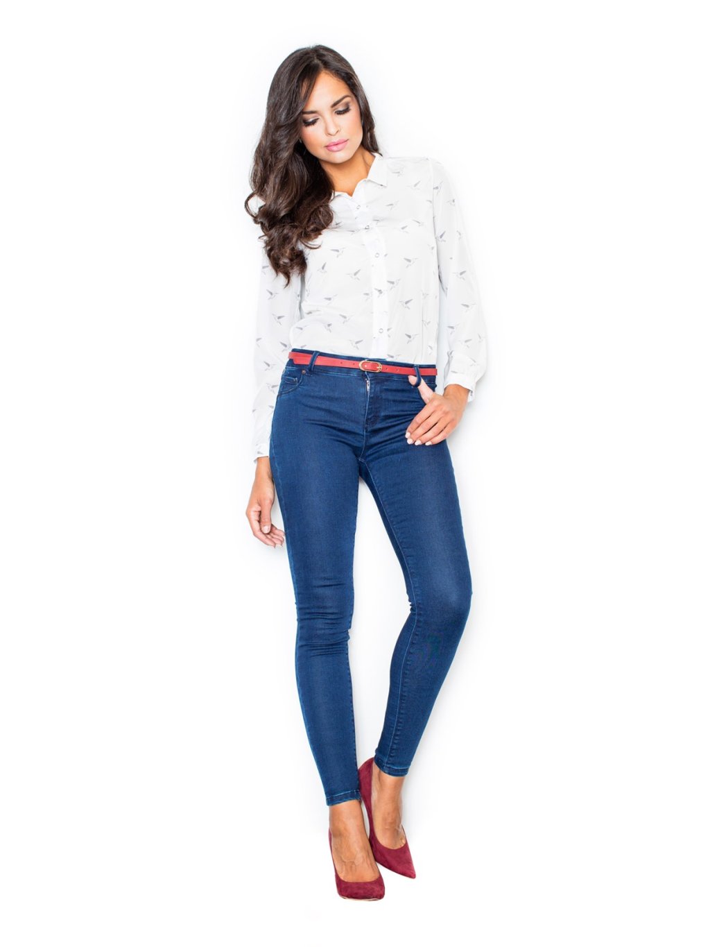 Remek kombináció magas szoknyával és nadrággal.