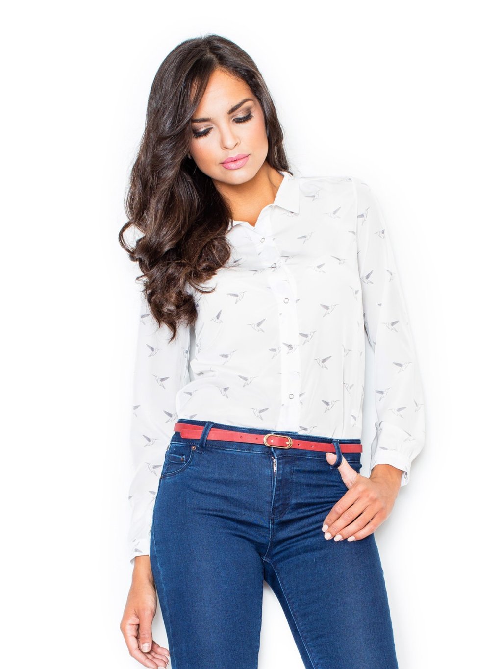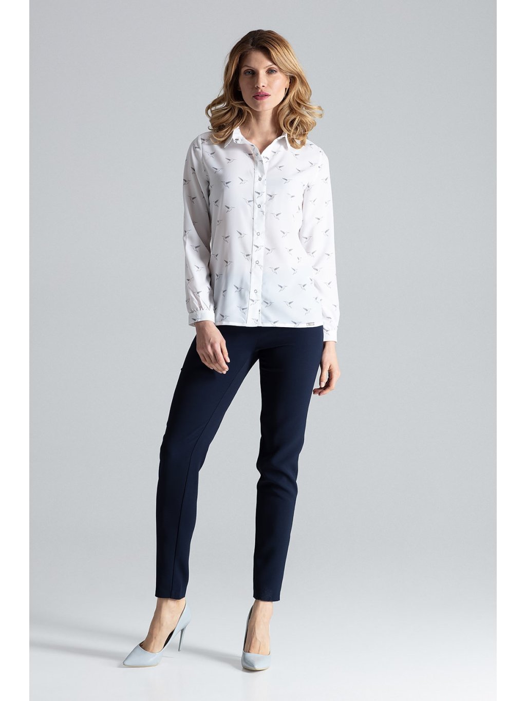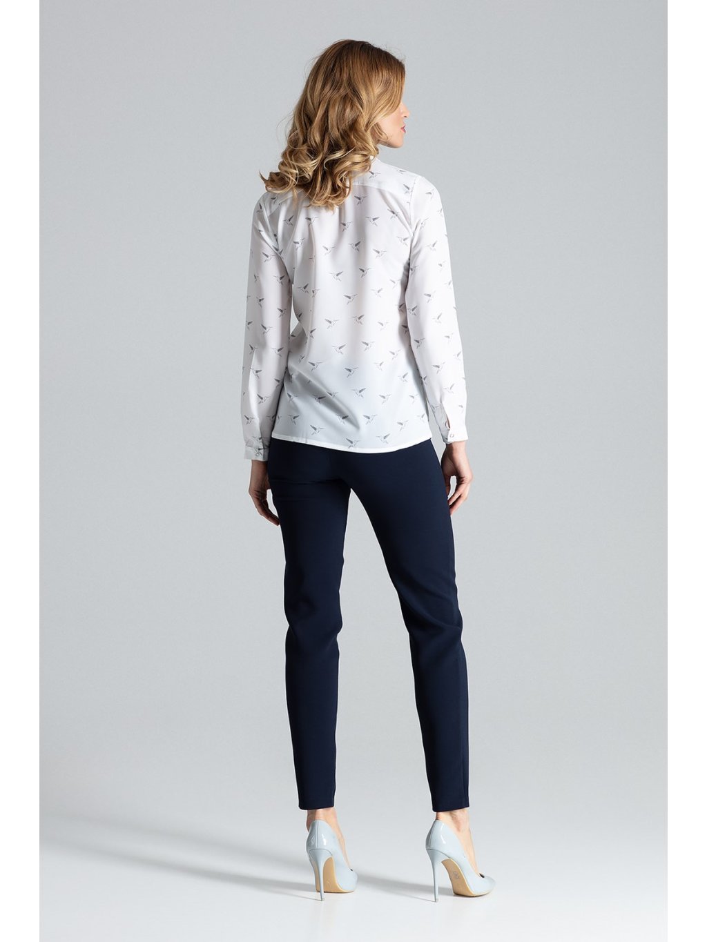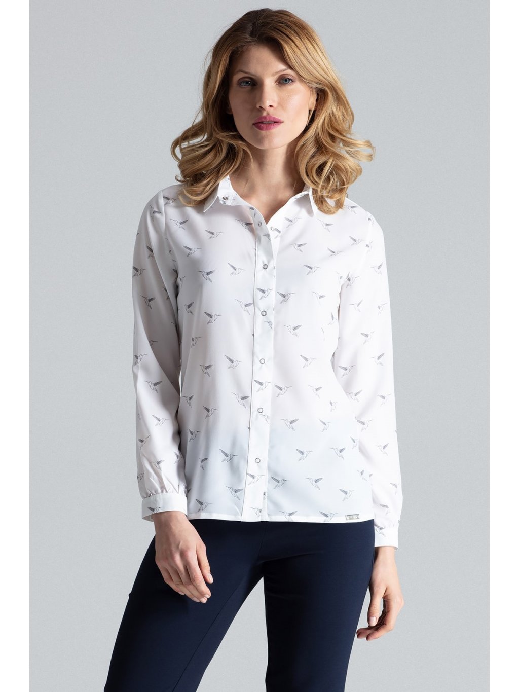 Könnyű krémszínű ing madár mintával