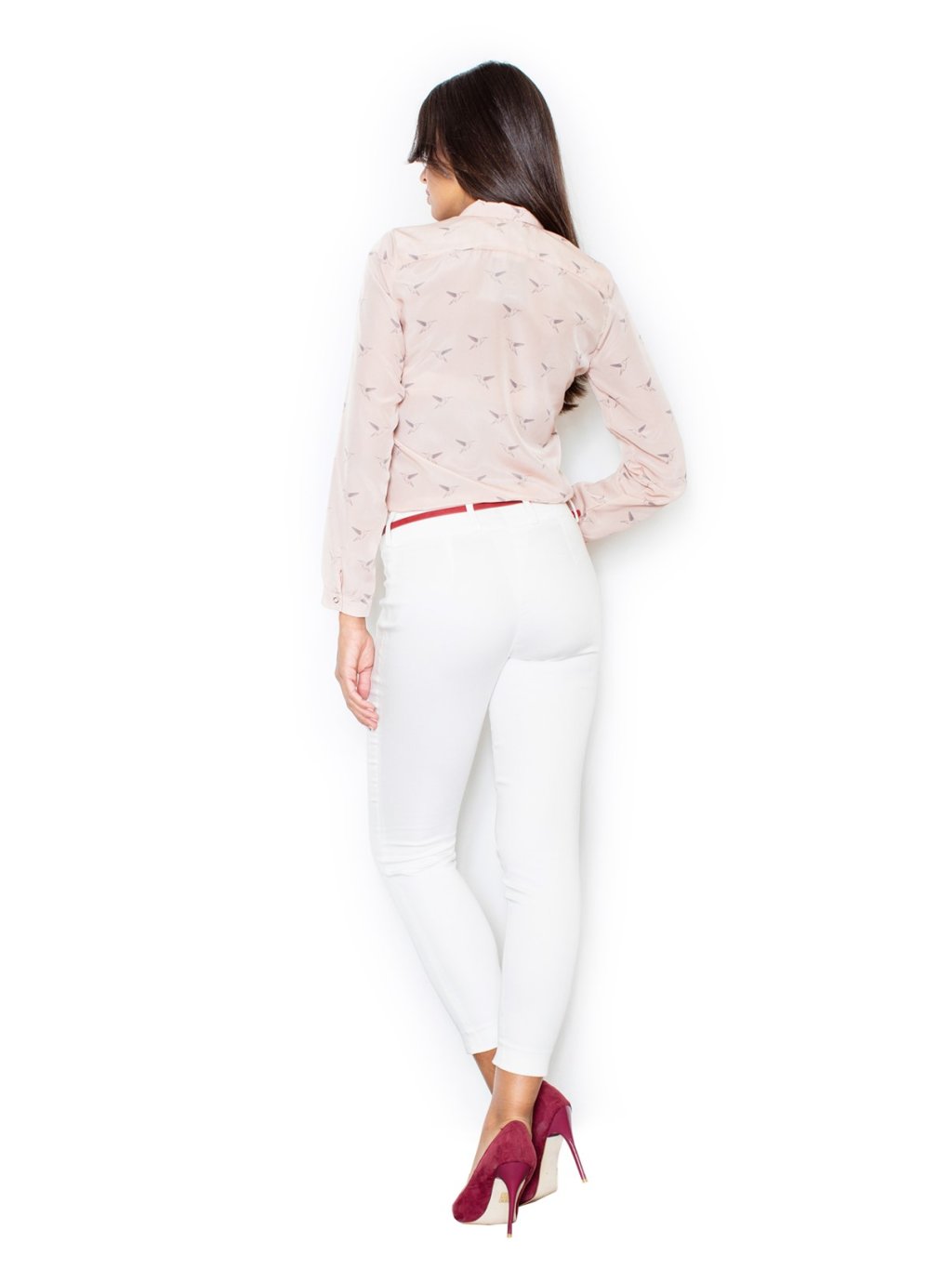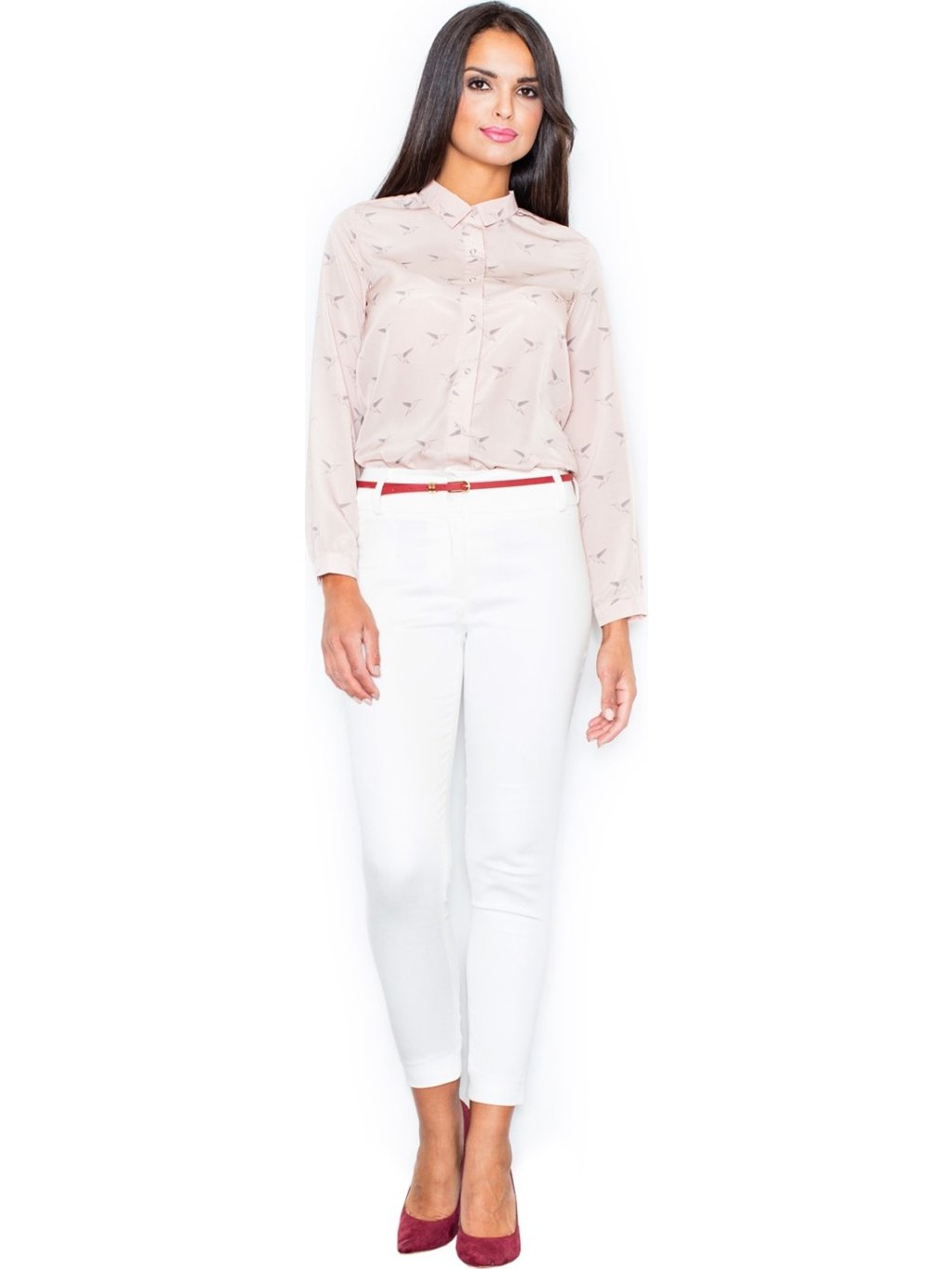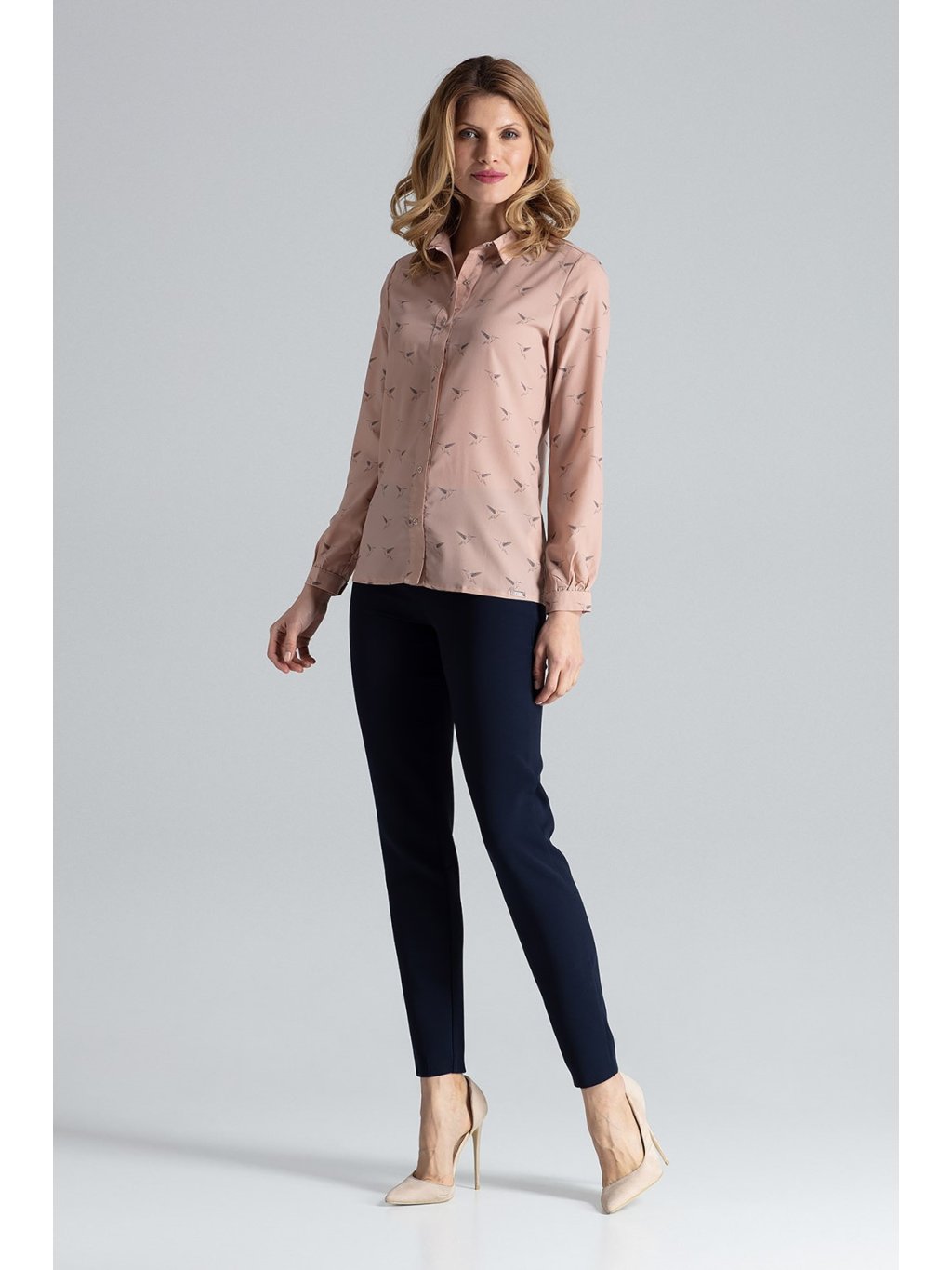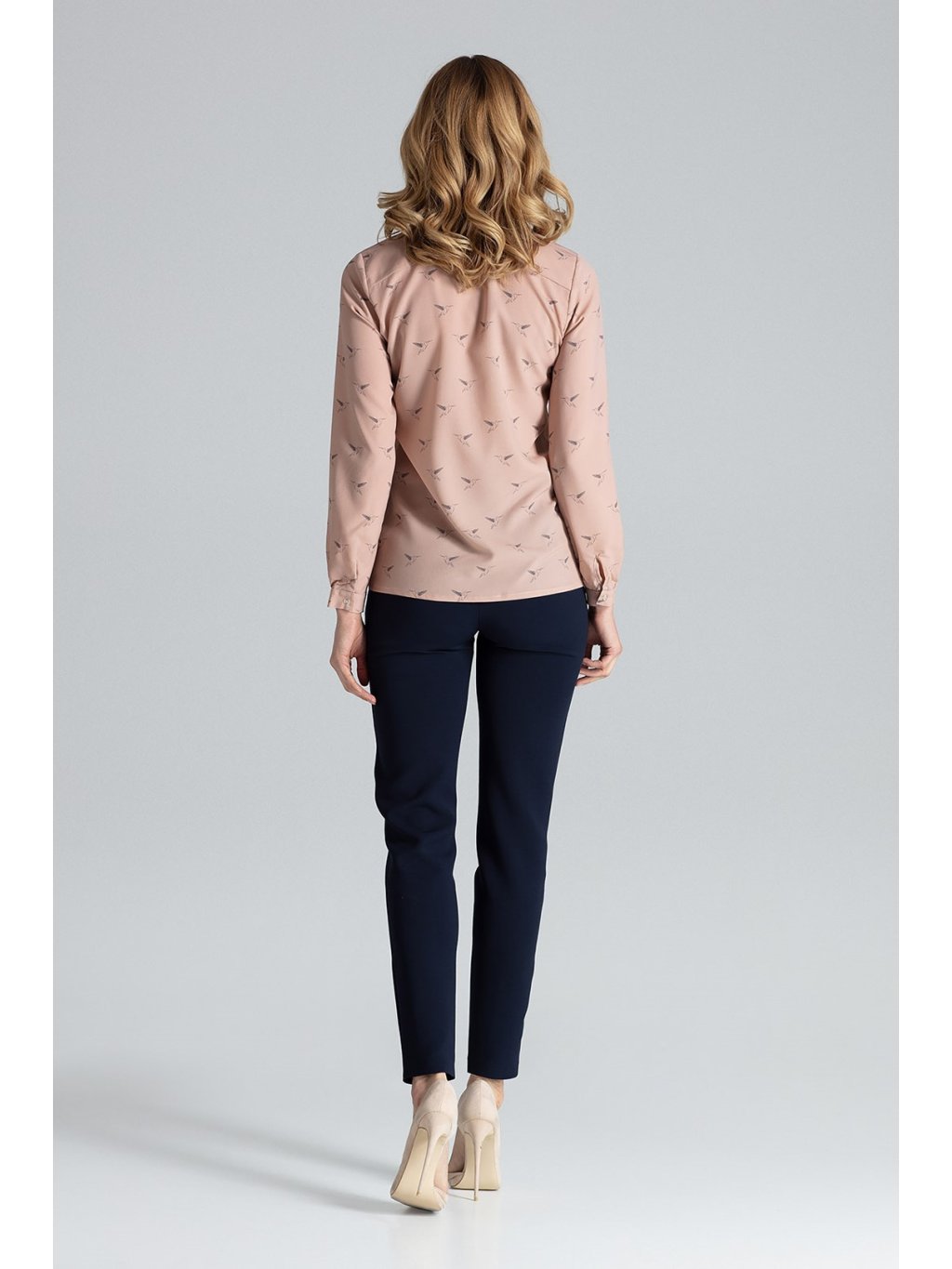 Könnyű púderszínű ing madár mintával